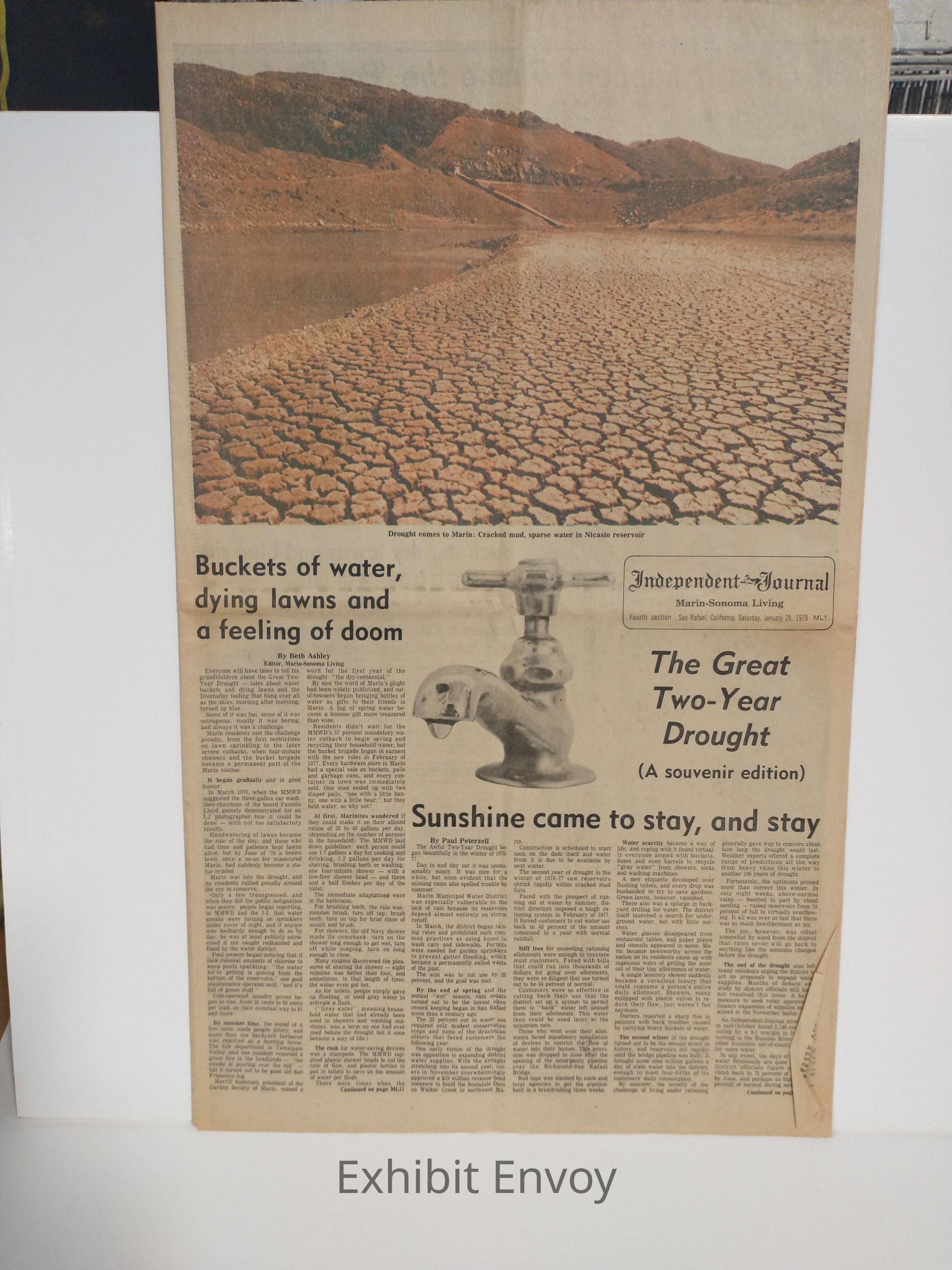 After the 1976-1977 drought, the Independent Journal published a special retrospective issue highlighting the effects of the disaster. Articles explored how residents conserved water, the drought’s negative impact on dairies and ranches, and even how outdoor athletic activities suffered as sports fields fell prey to the drought.