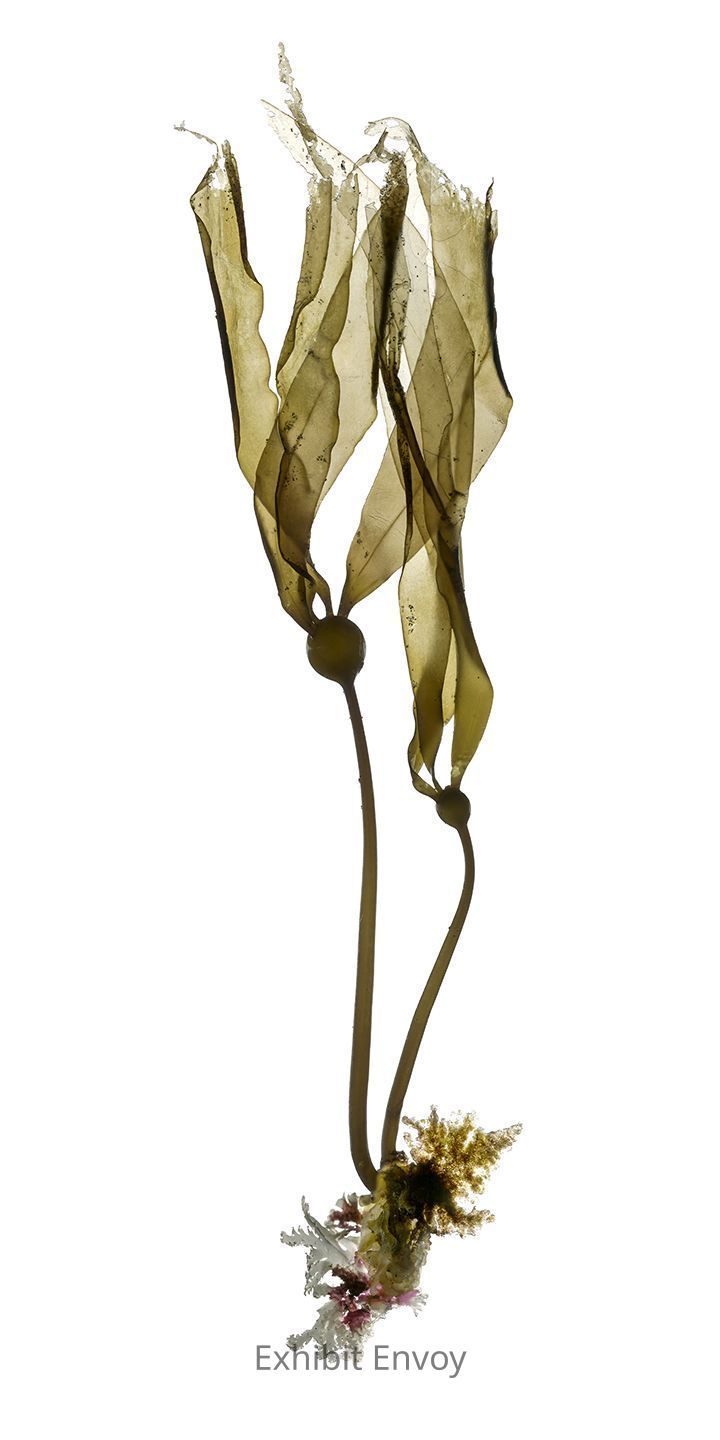 Two juvenile Nereocystis with a merged holdfast. These two baby bull kelp were collected in the spring from the shore of Fort Funston, the beach at the south end of San Francisco where I walk often.