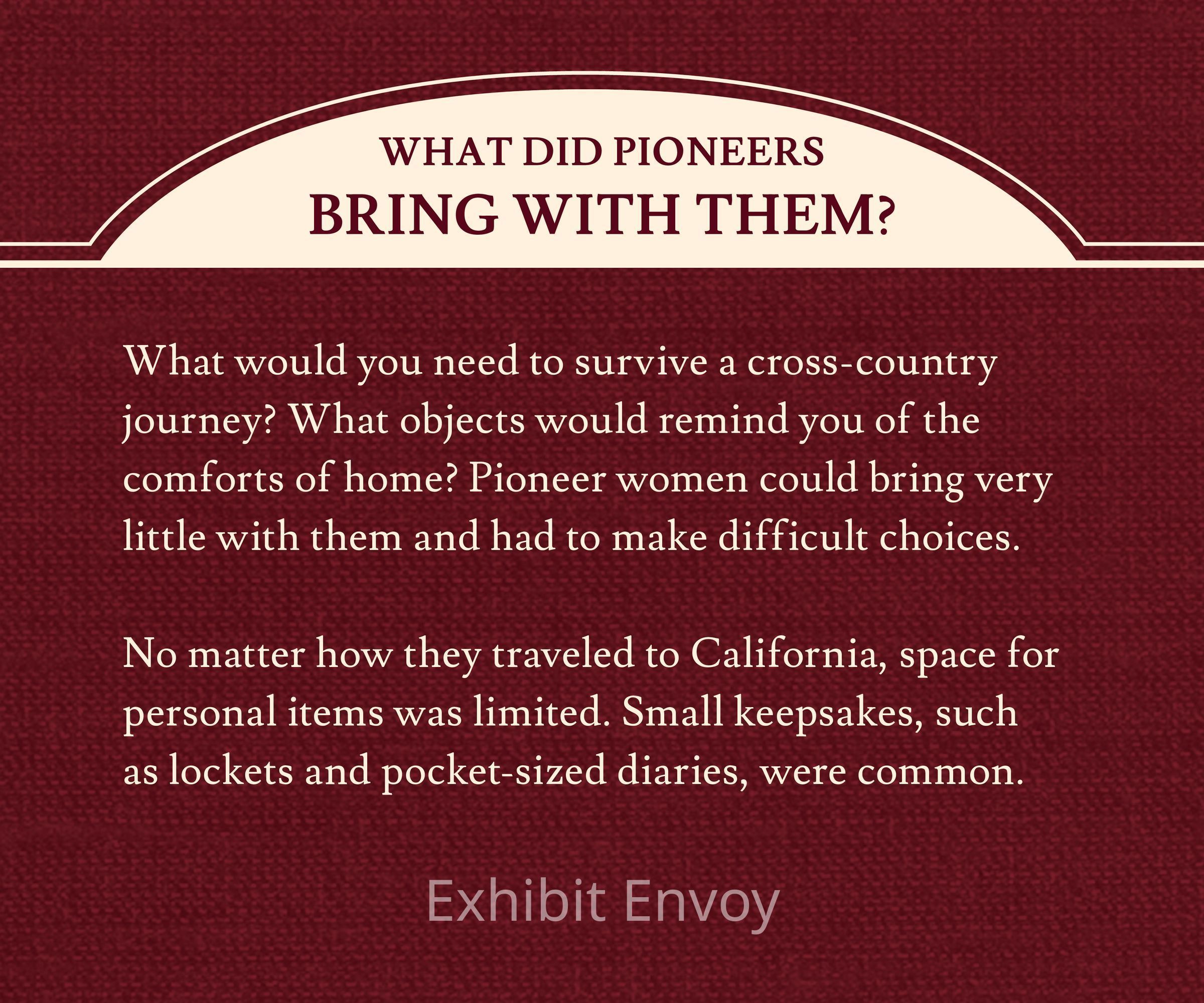 What did pioneers bring with them? Small keepsakes