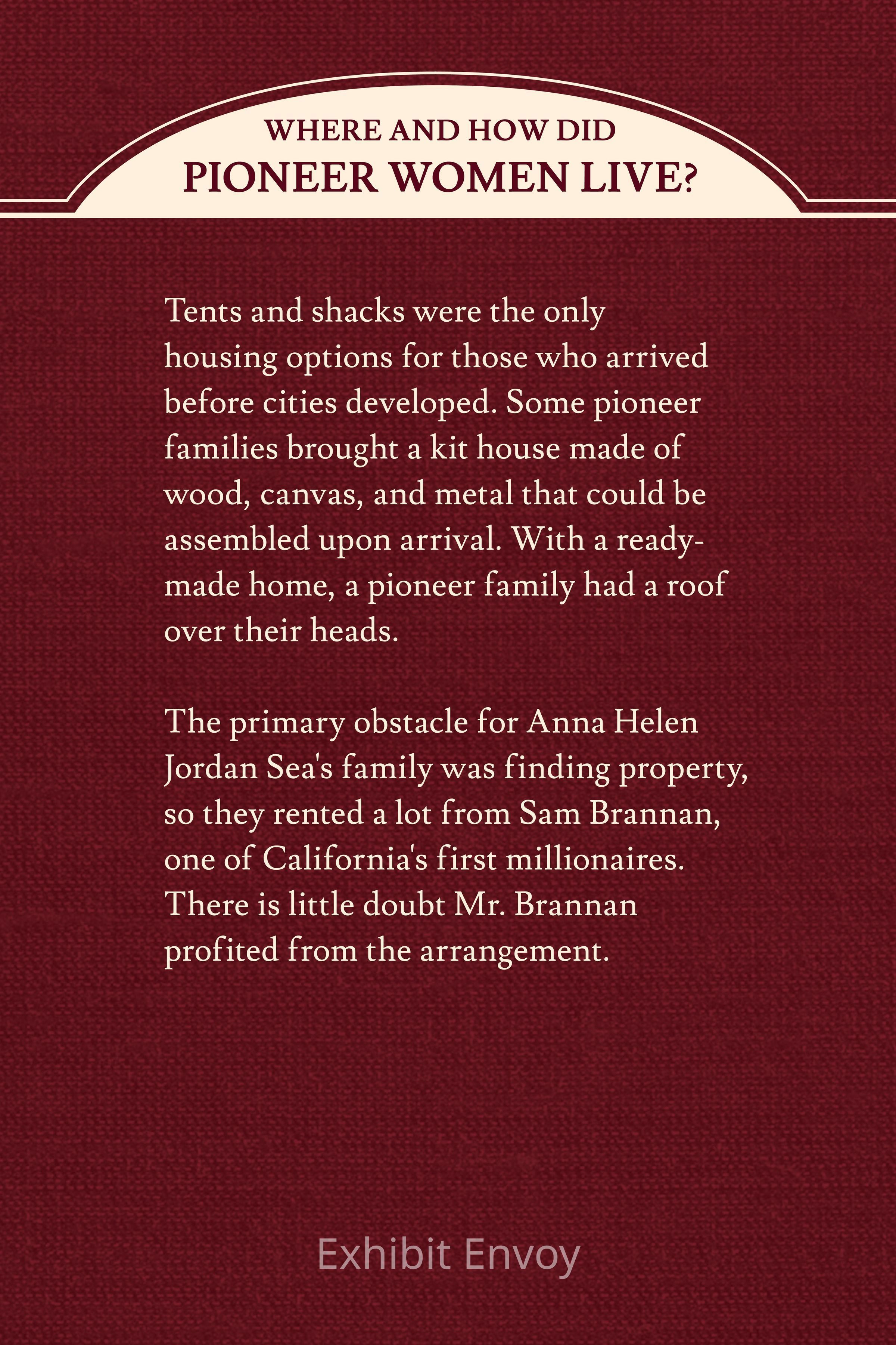 Where and how did pioneer women live? Interpretation