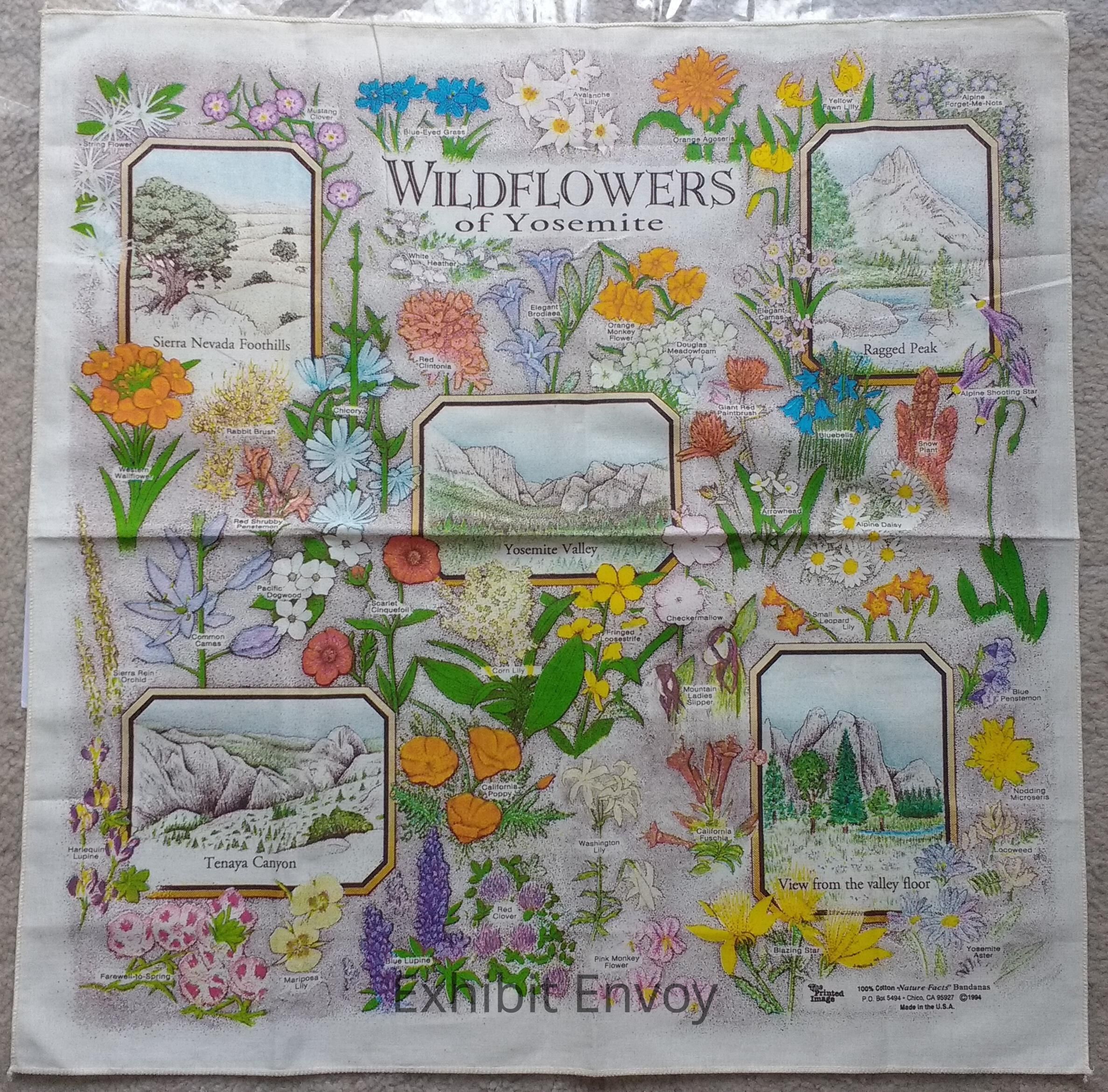 National Park bandana highlighting scenes from/wildflowers in Yosemite. For YP Discovery Kit.