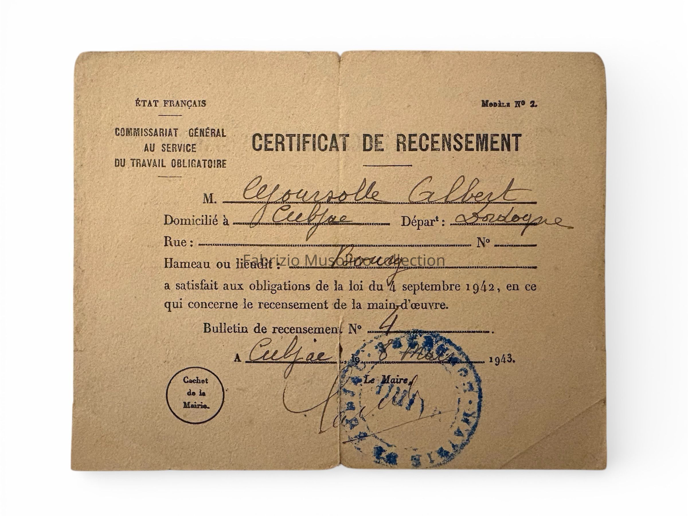 Census certificate, 1943