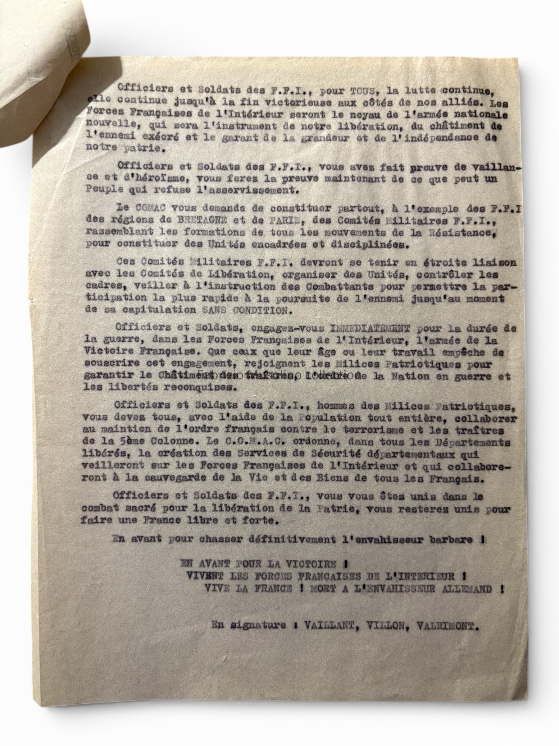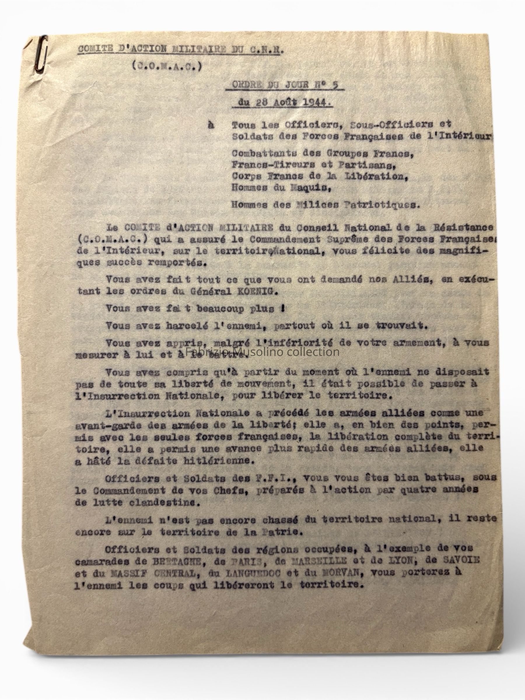 COMAC order of the day, August 28th, 1944