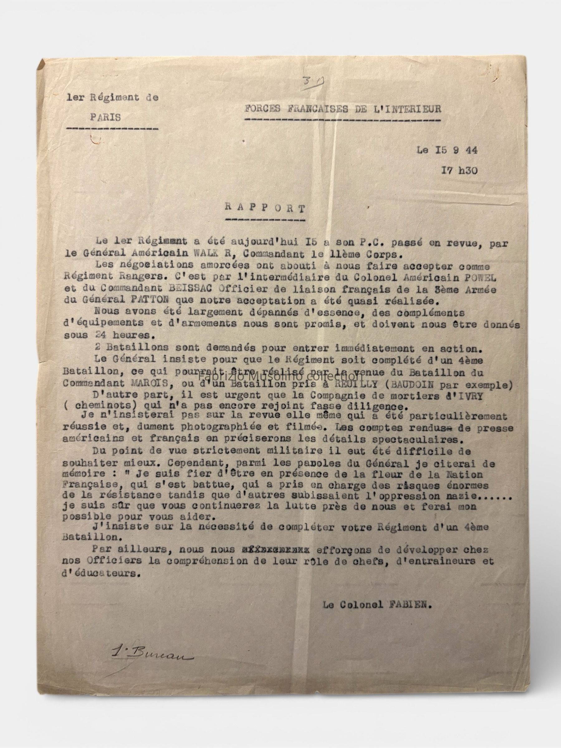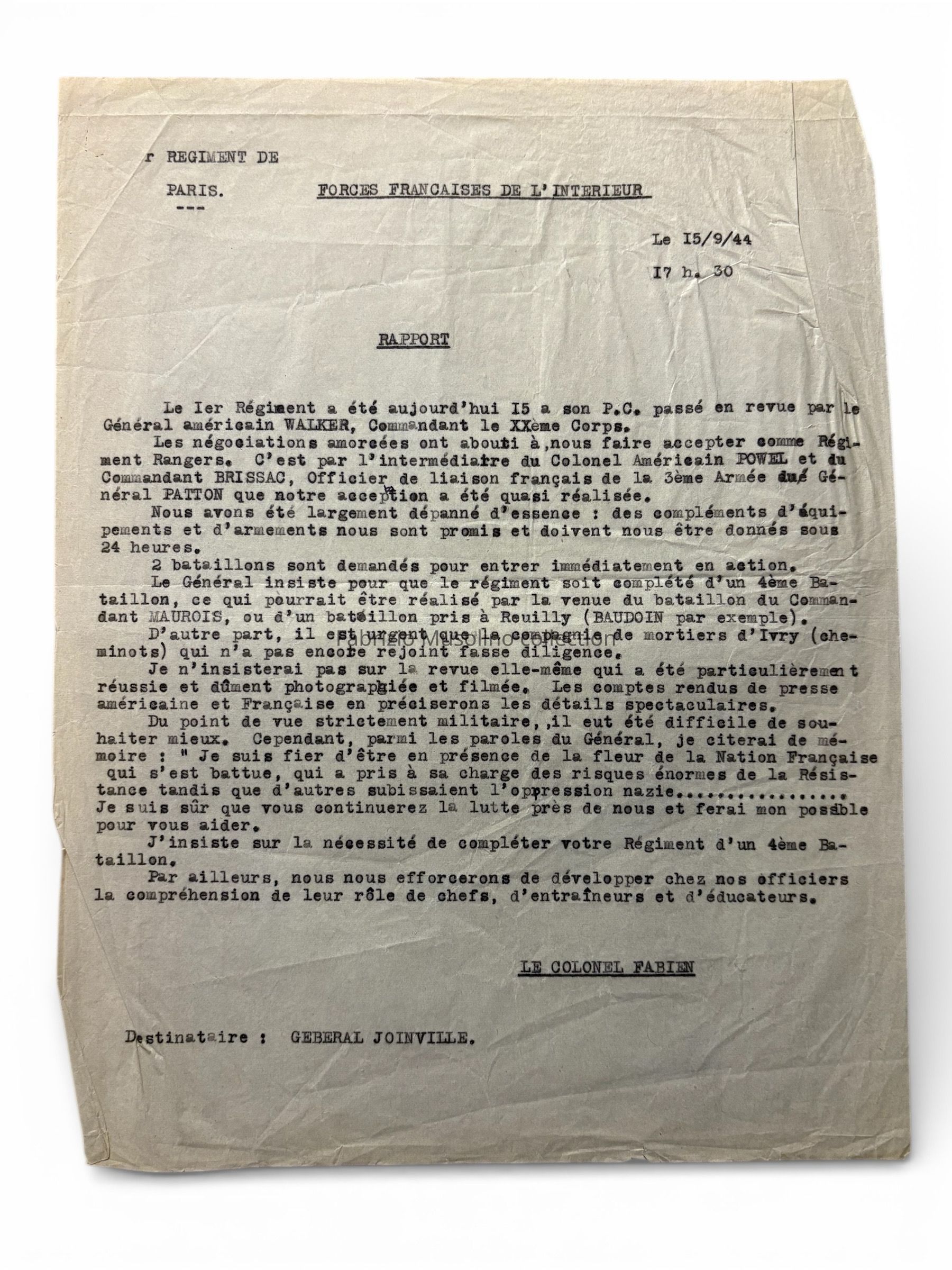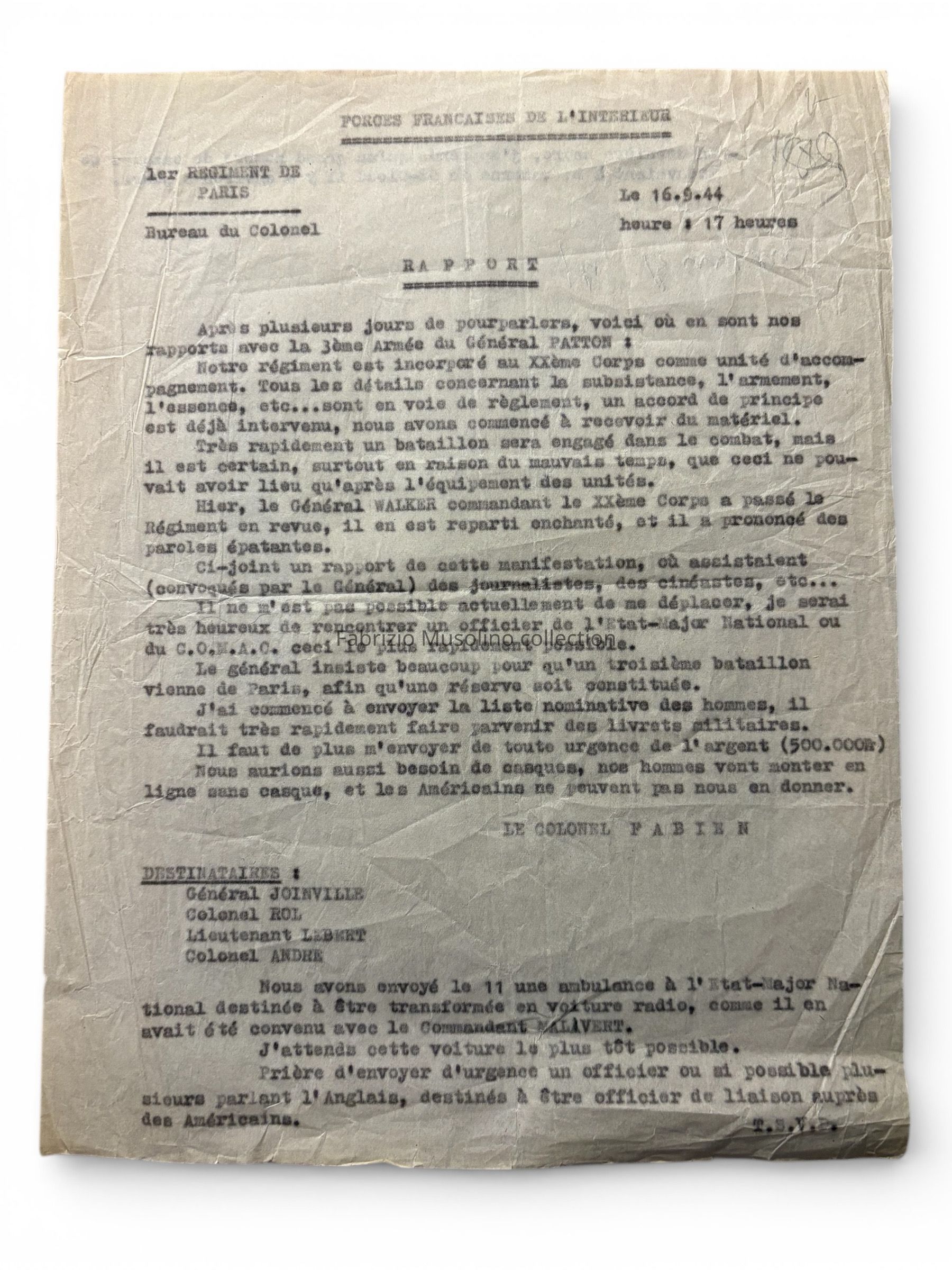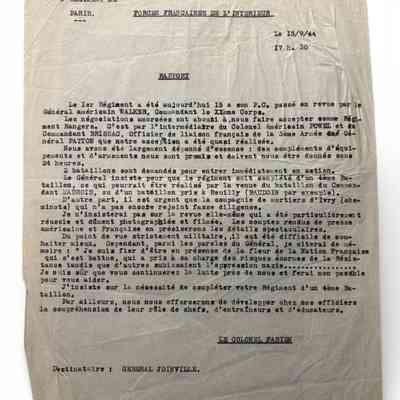 FFI 1st Paris Regiment documents, September 1944