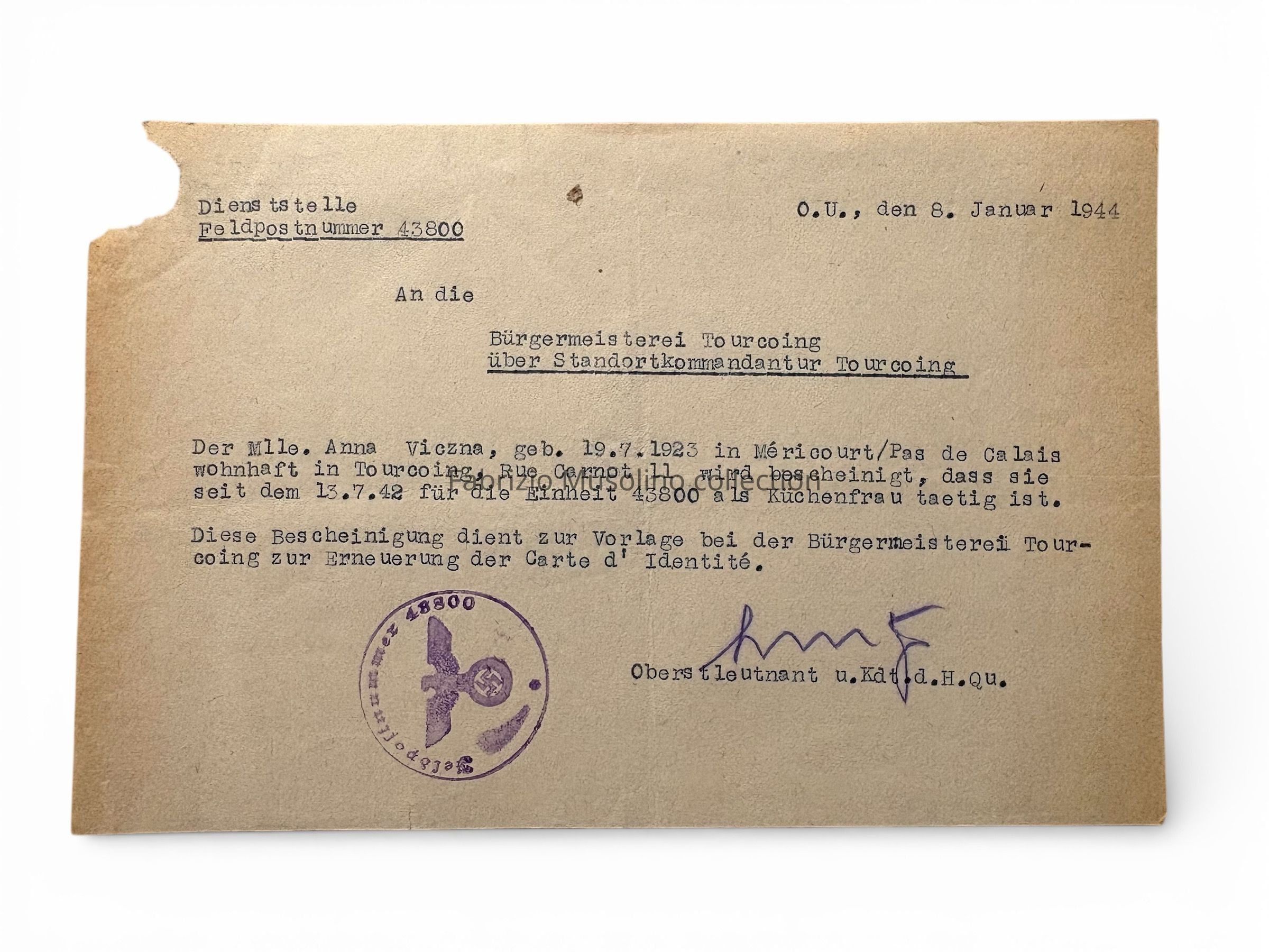 German certificate, January 1944