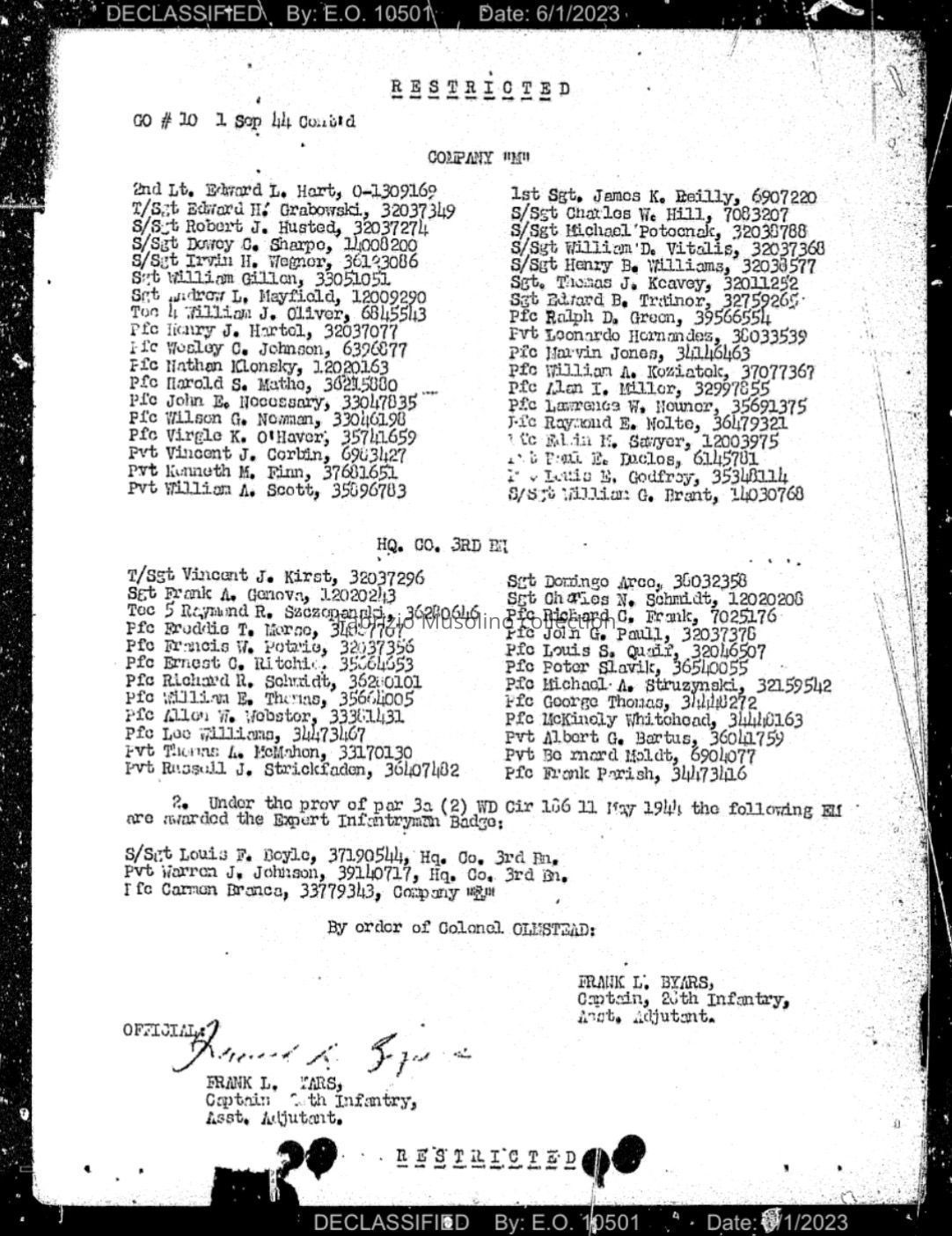 U.S.A. Army serial number