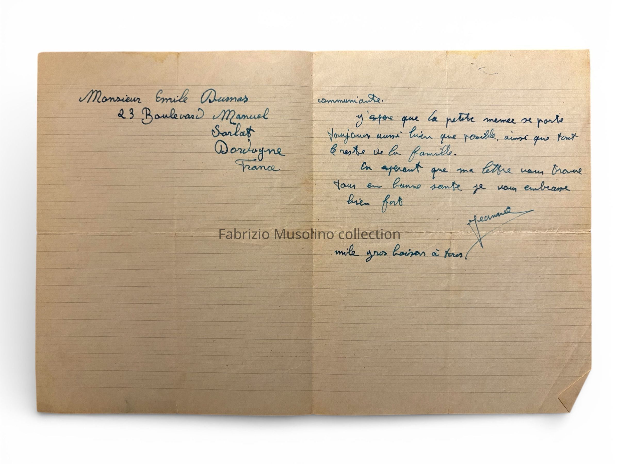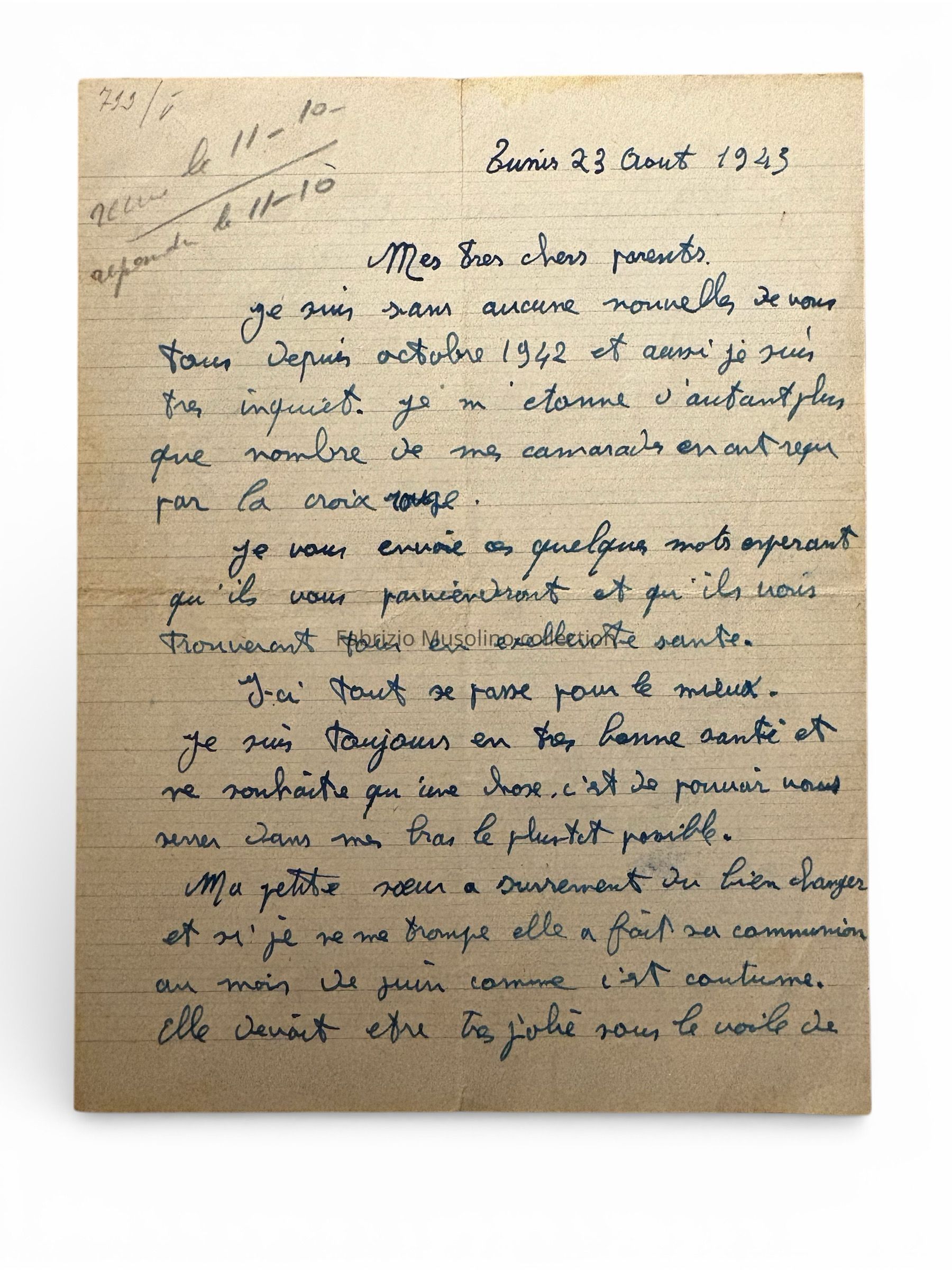 Letter to Emile Dumas, from Tunis, August 1943