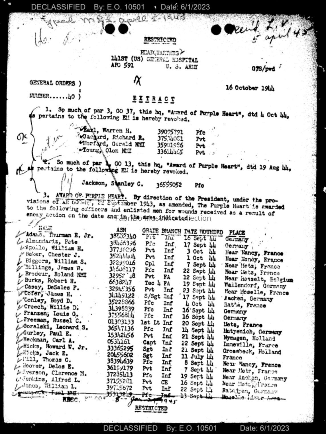 U.S.A. Army serial number
