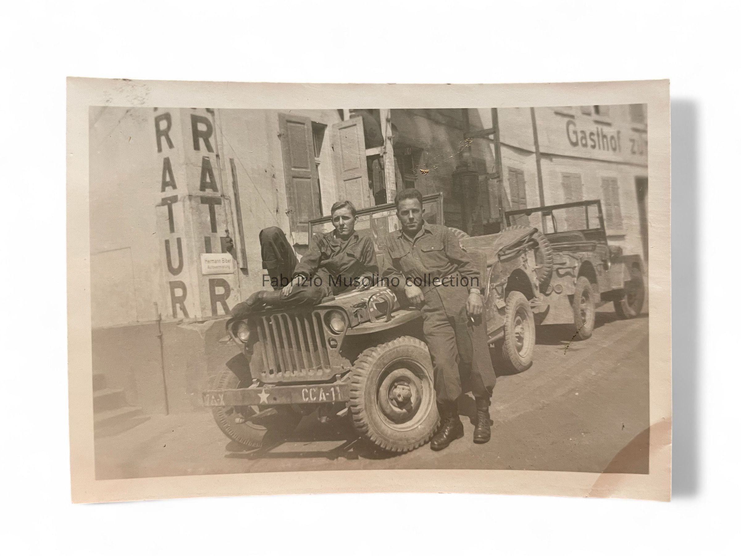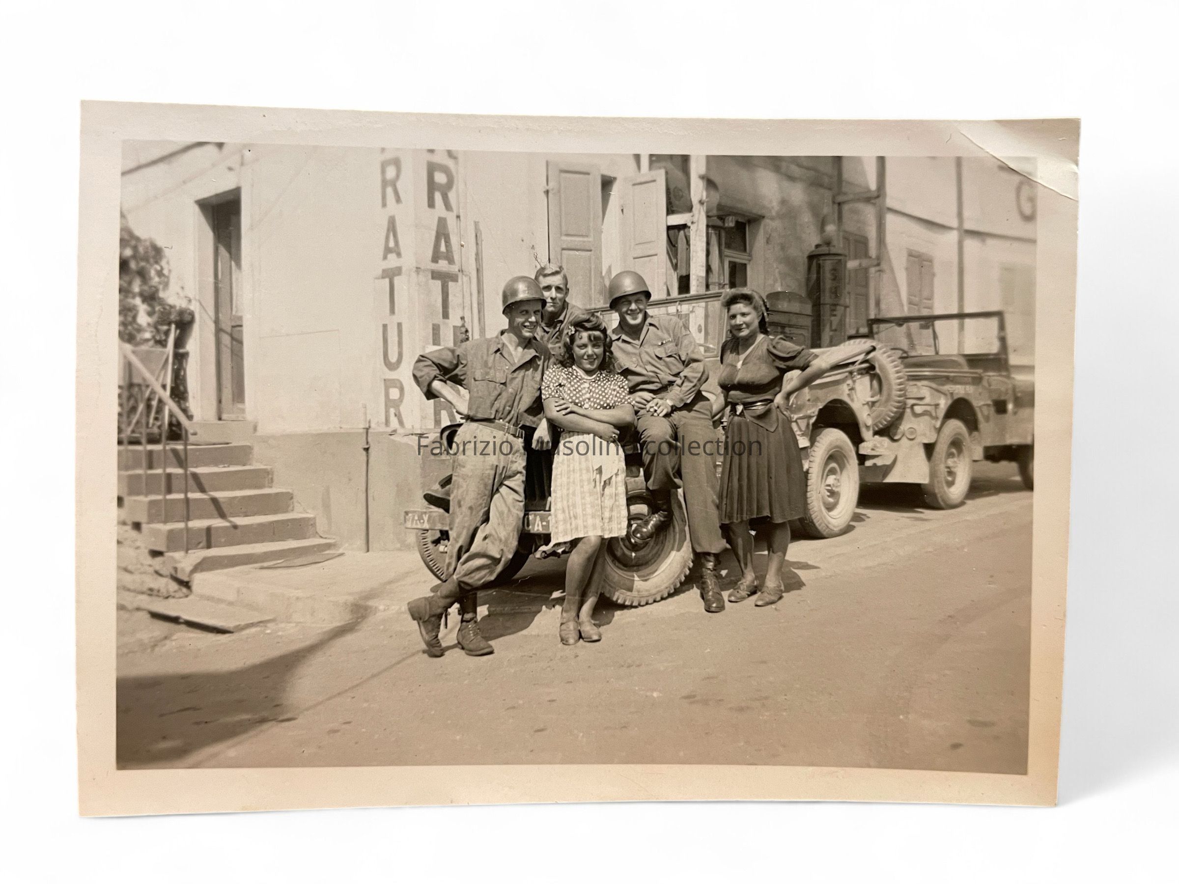 Lot of two pictures, GIs with a Jeep and civilian girls