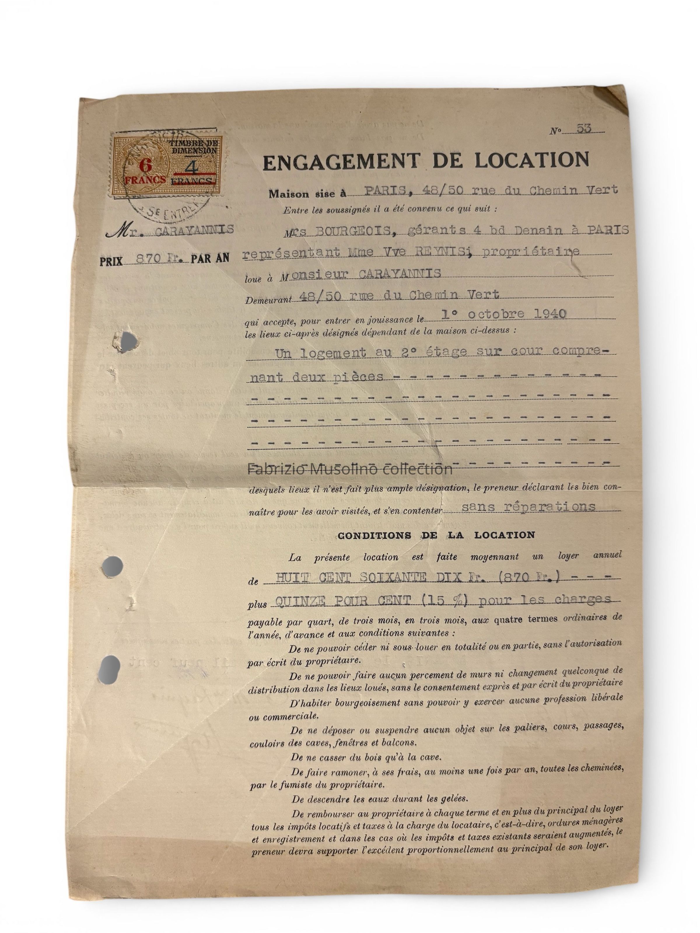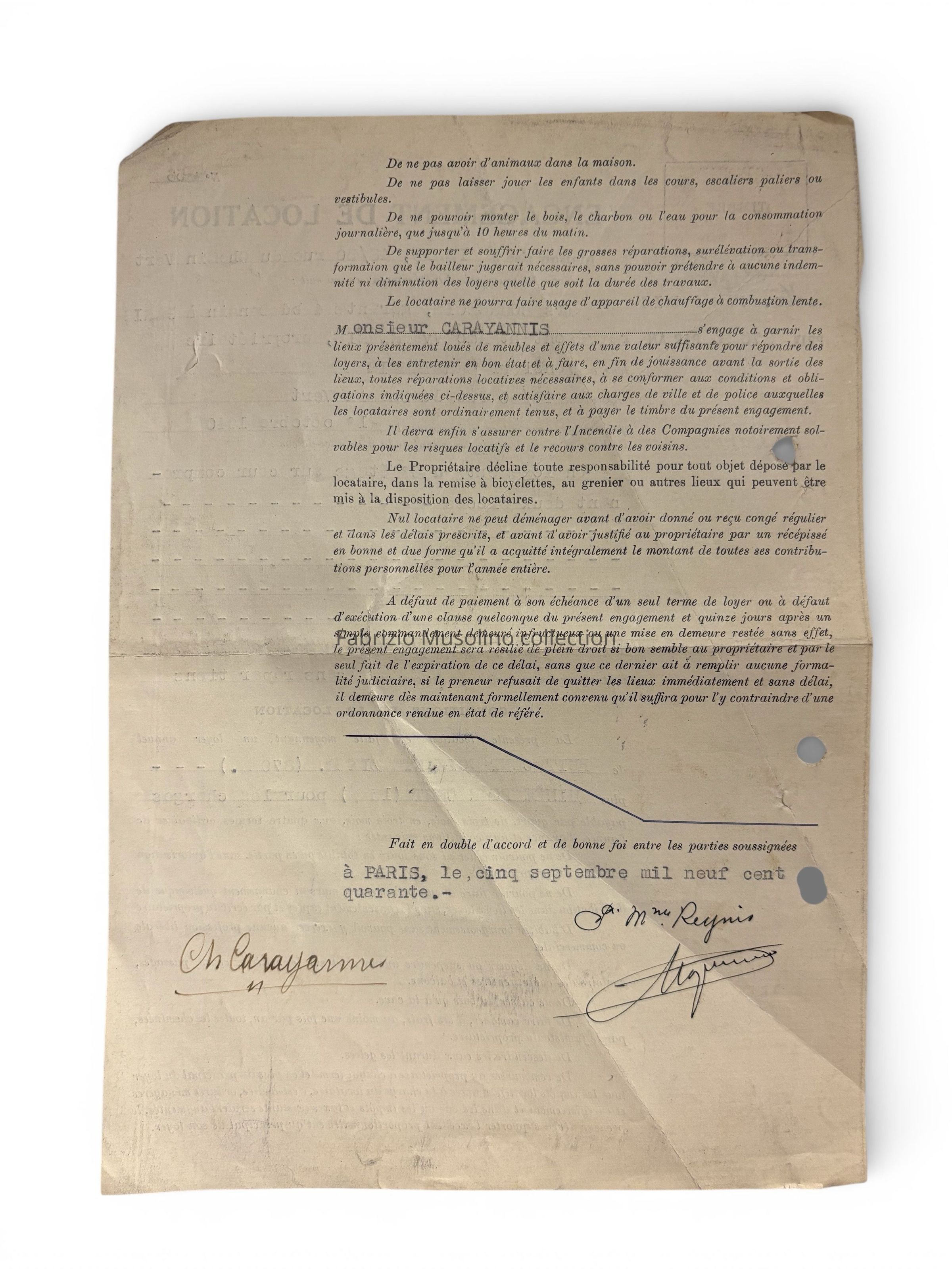 Rental agreement, Paris, 1940