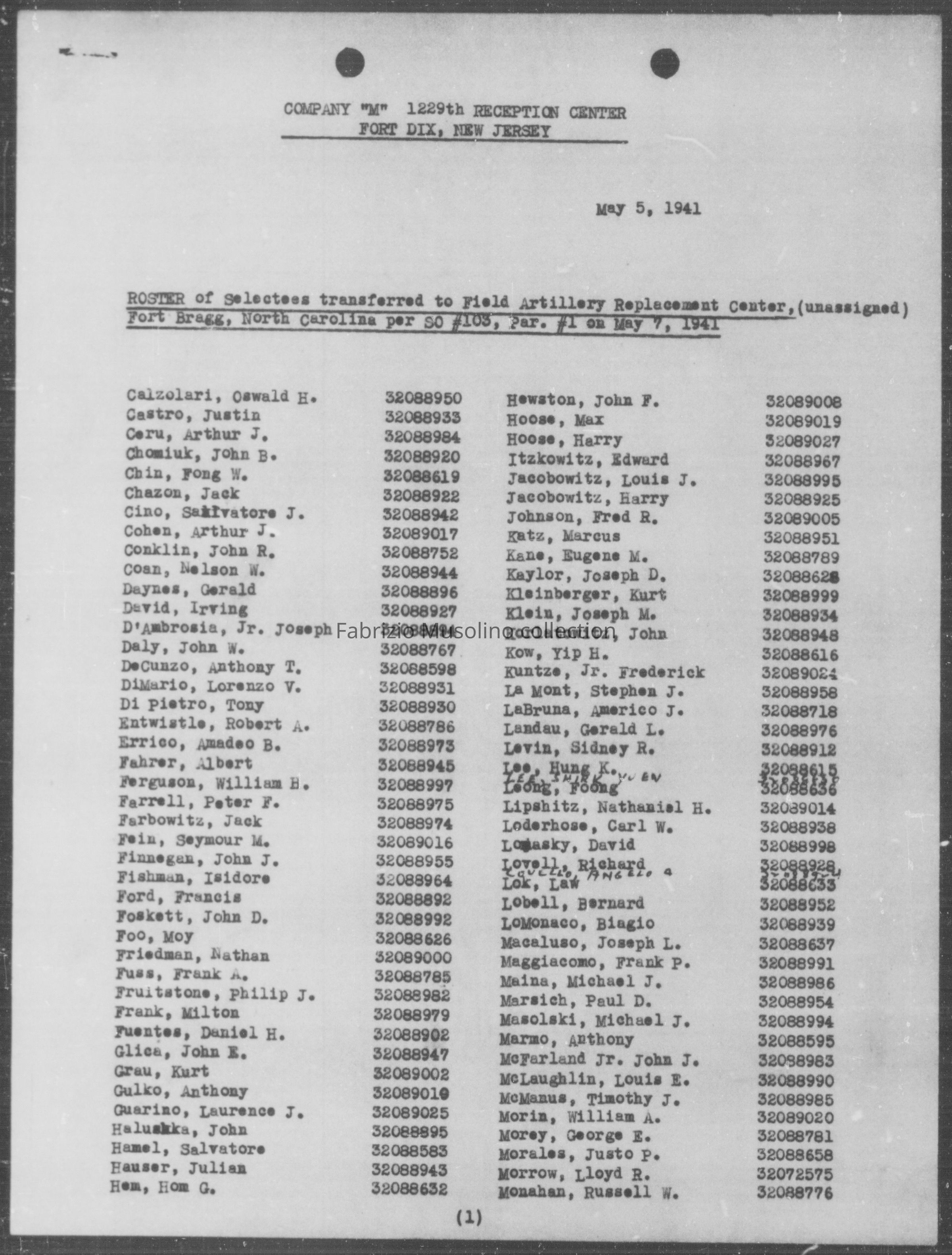 U.S.A. Army serial number,