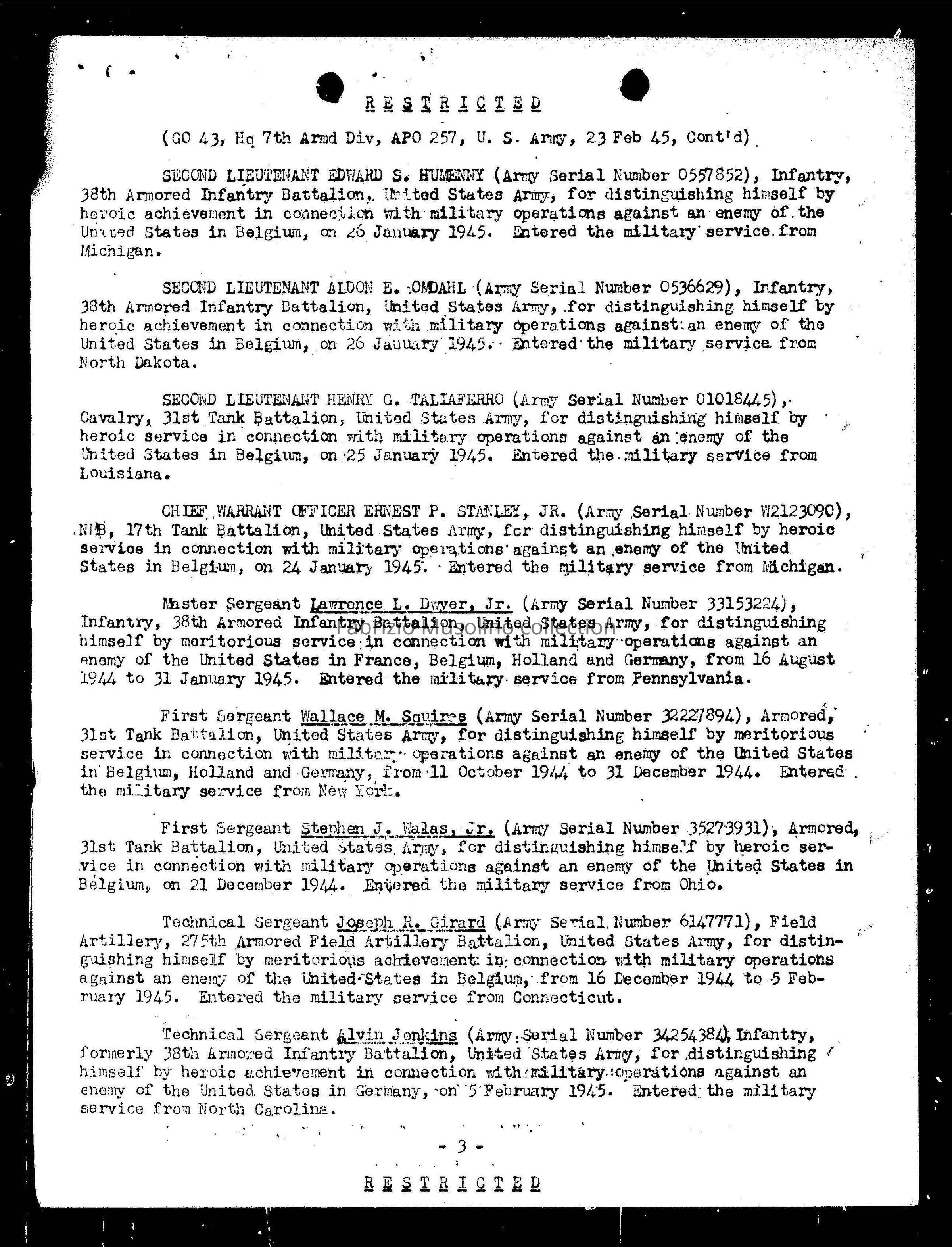 -Pfc Ben P Imbroglia (Benedetto) 32207095 LWA