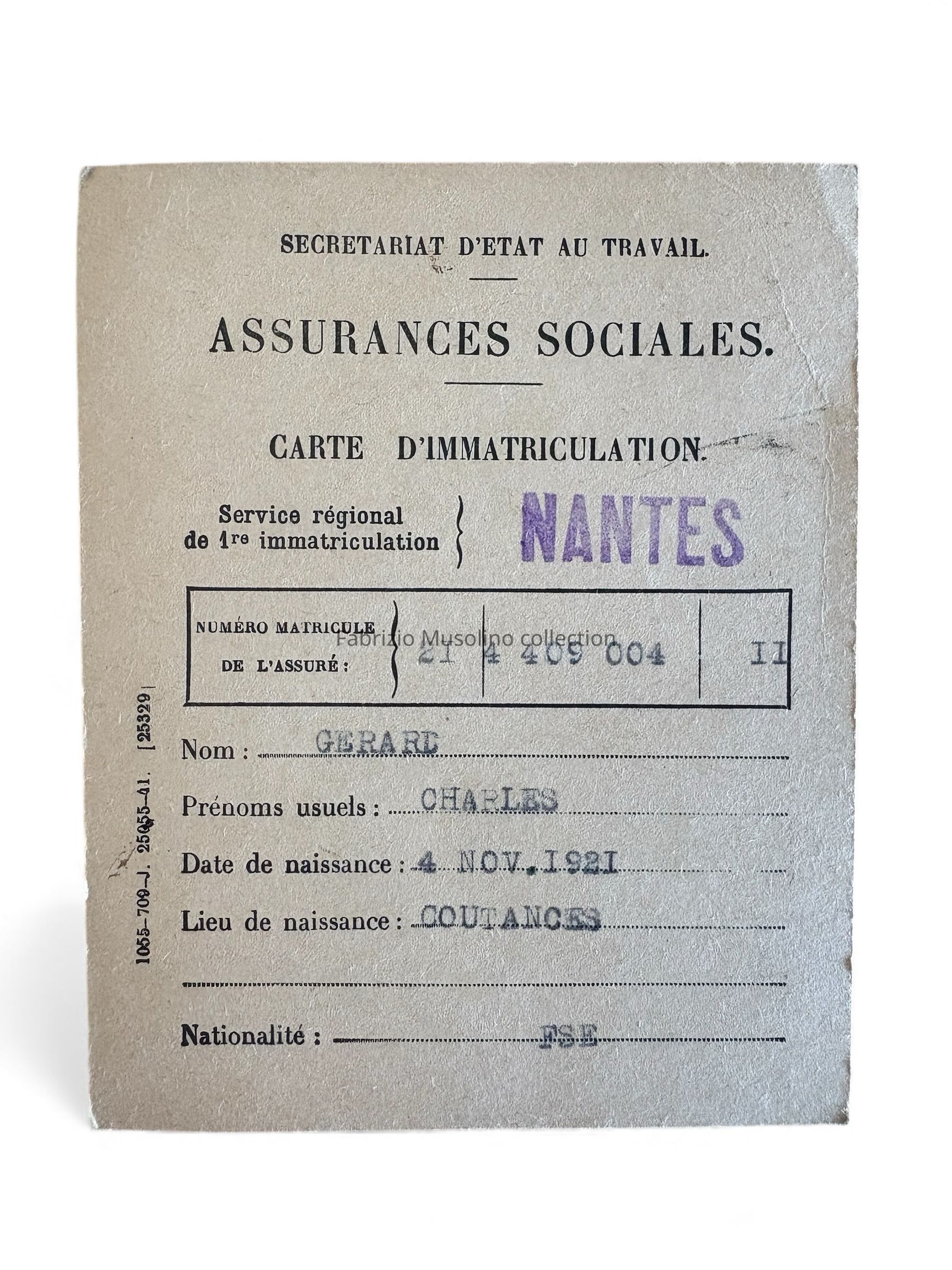 Social insurance card, Charles Gerard