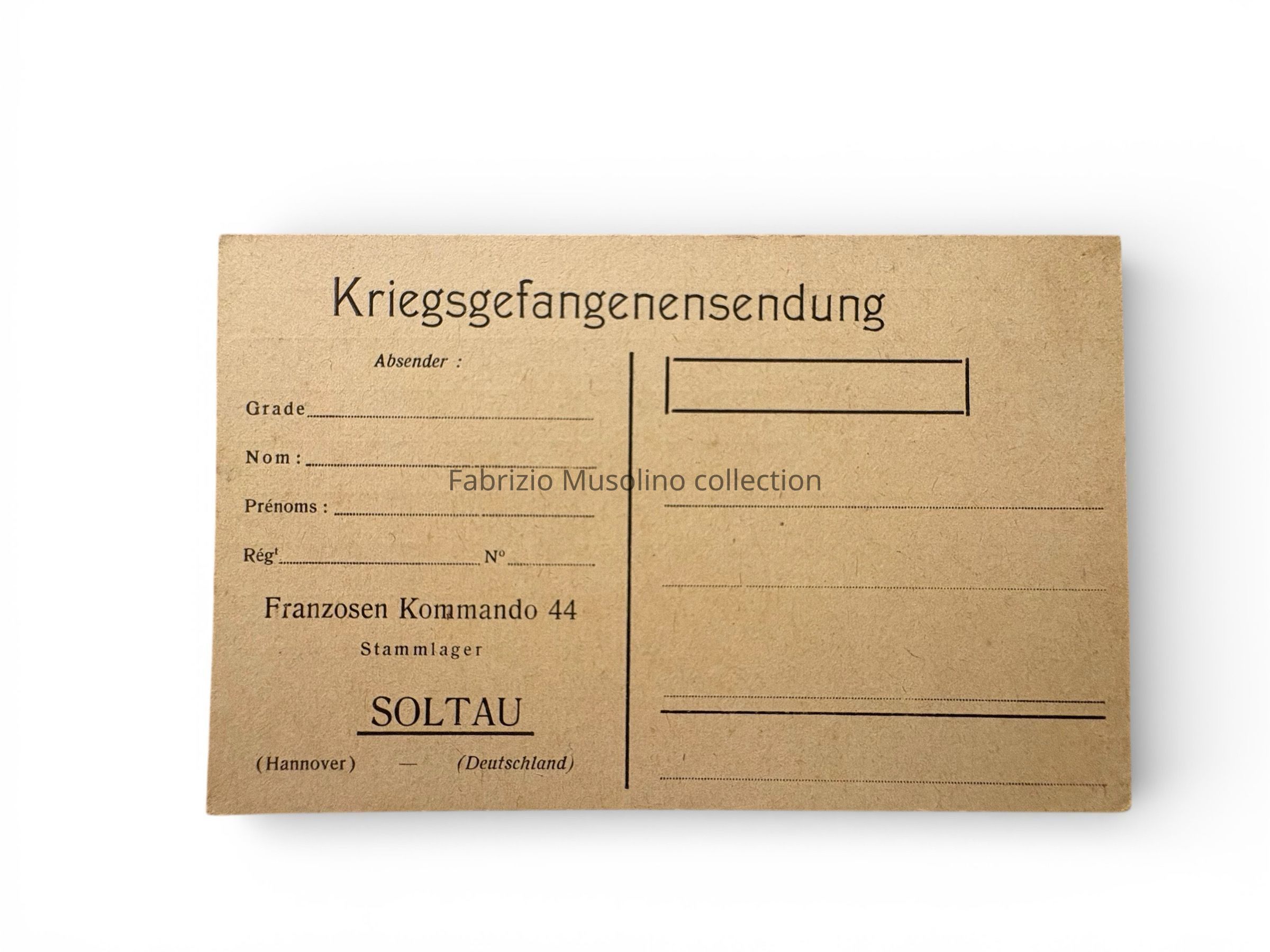 Soltau Stammlager card, blank
