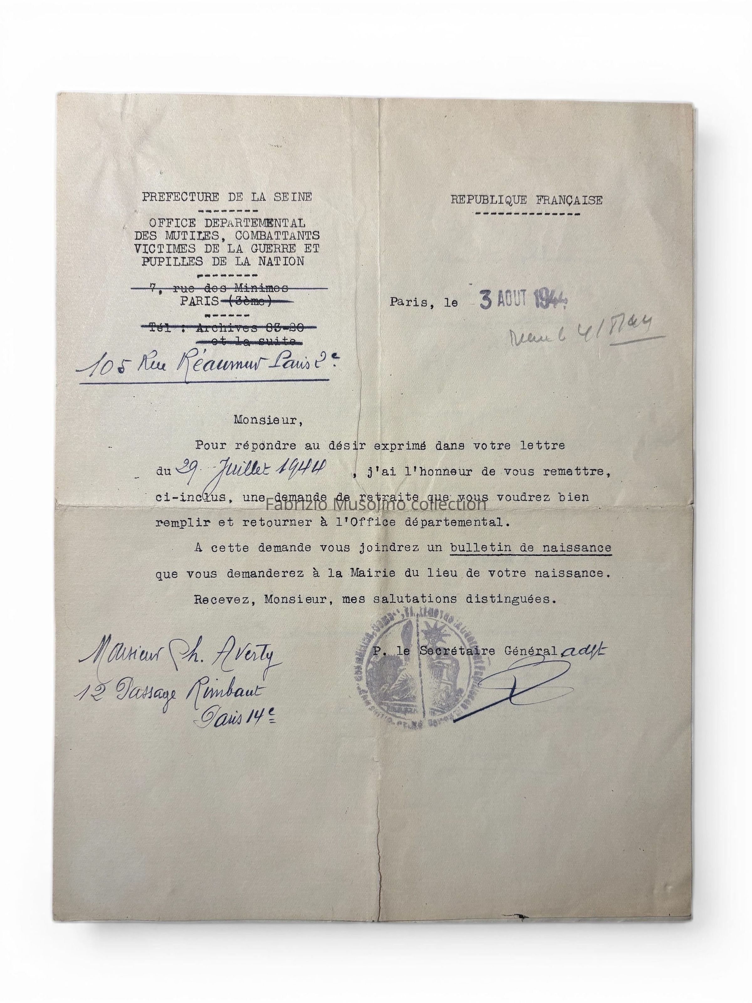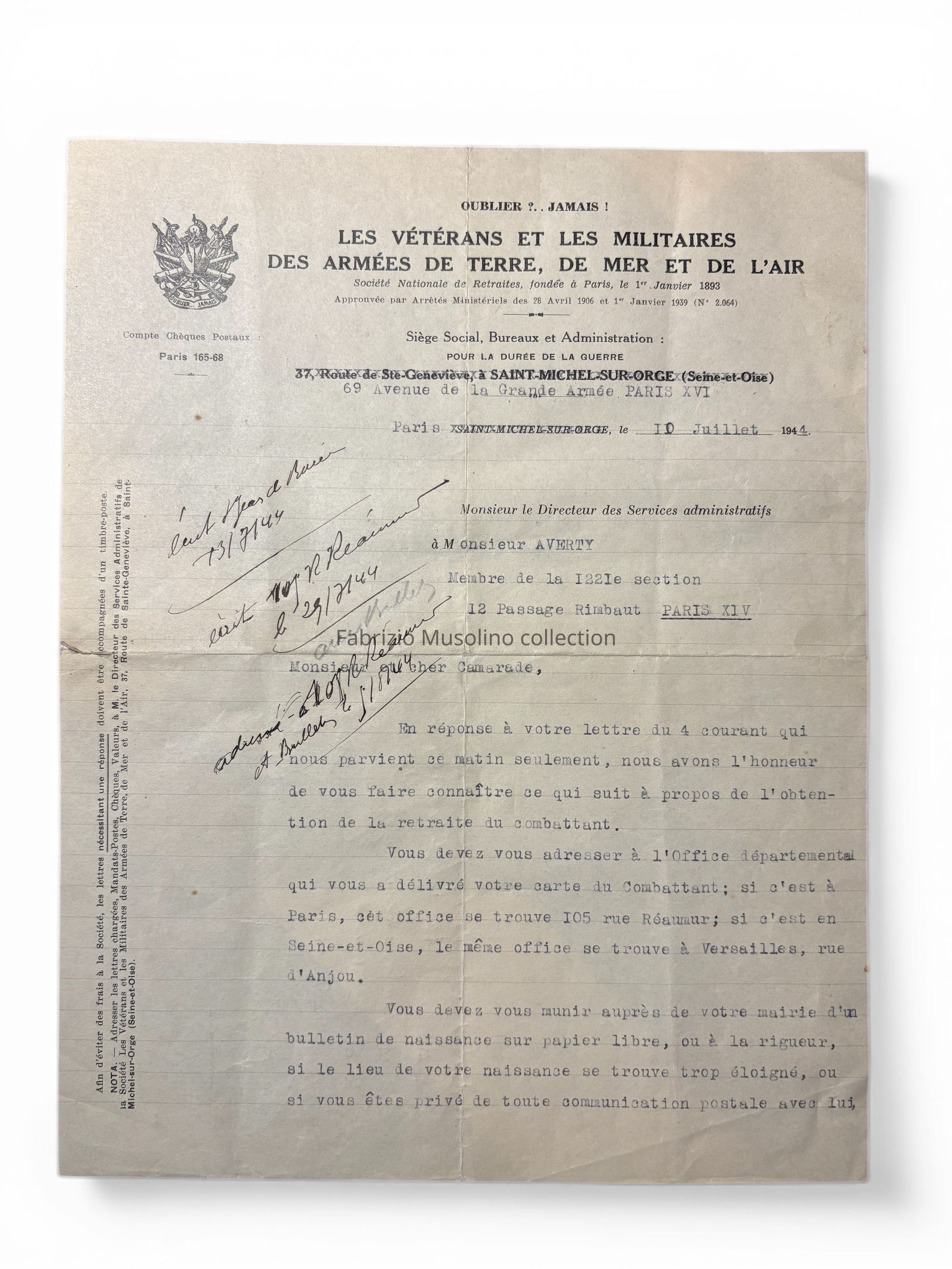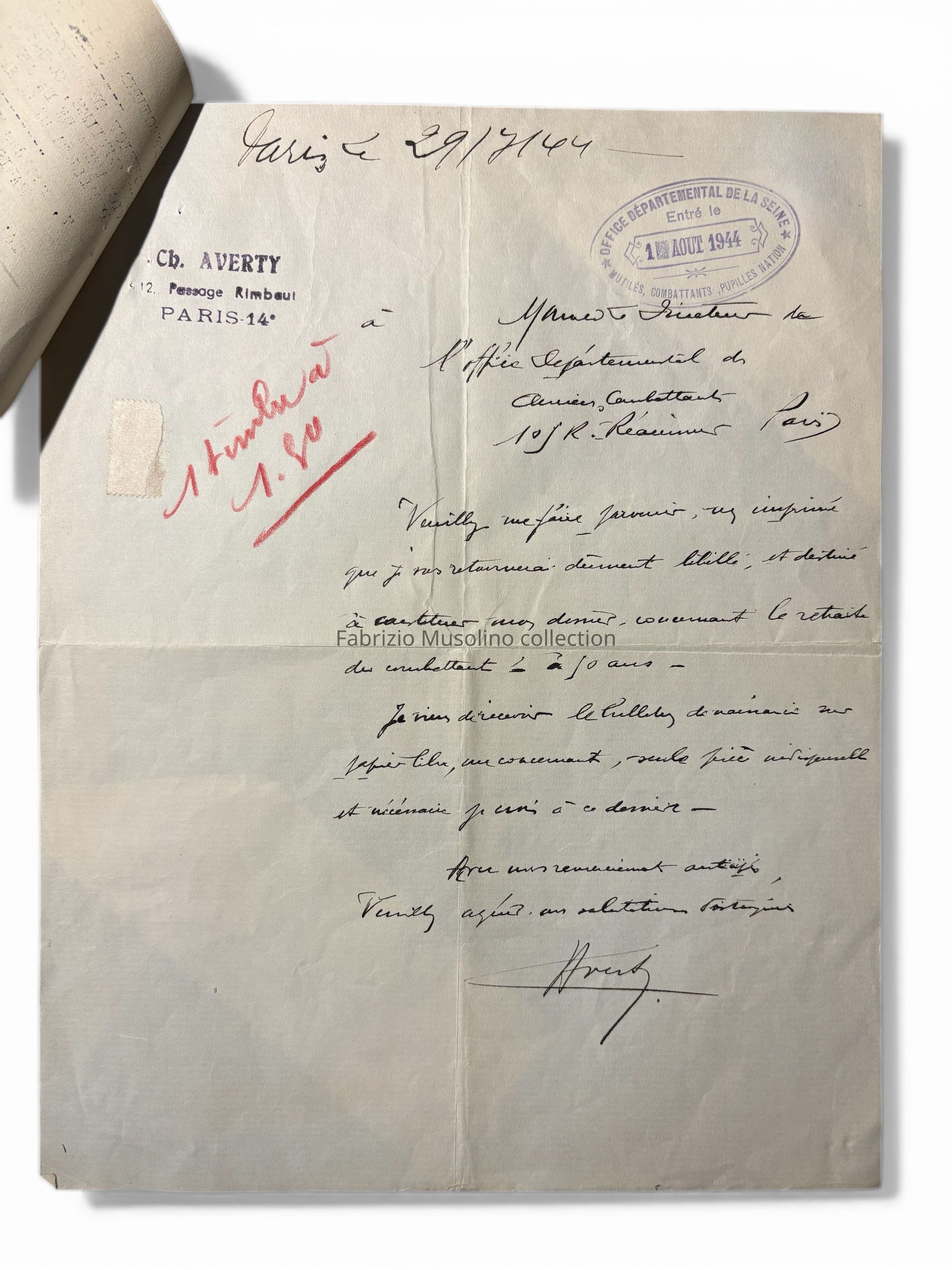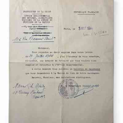 Veteran pension documents, 1944