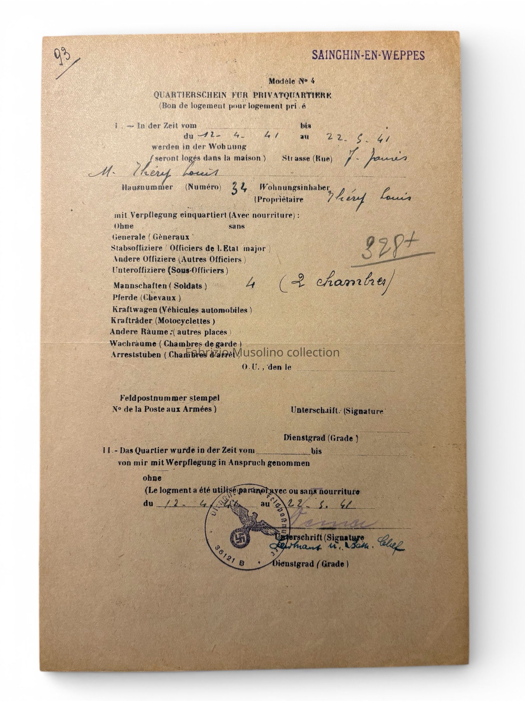 Voucher for room requisitions, 1941