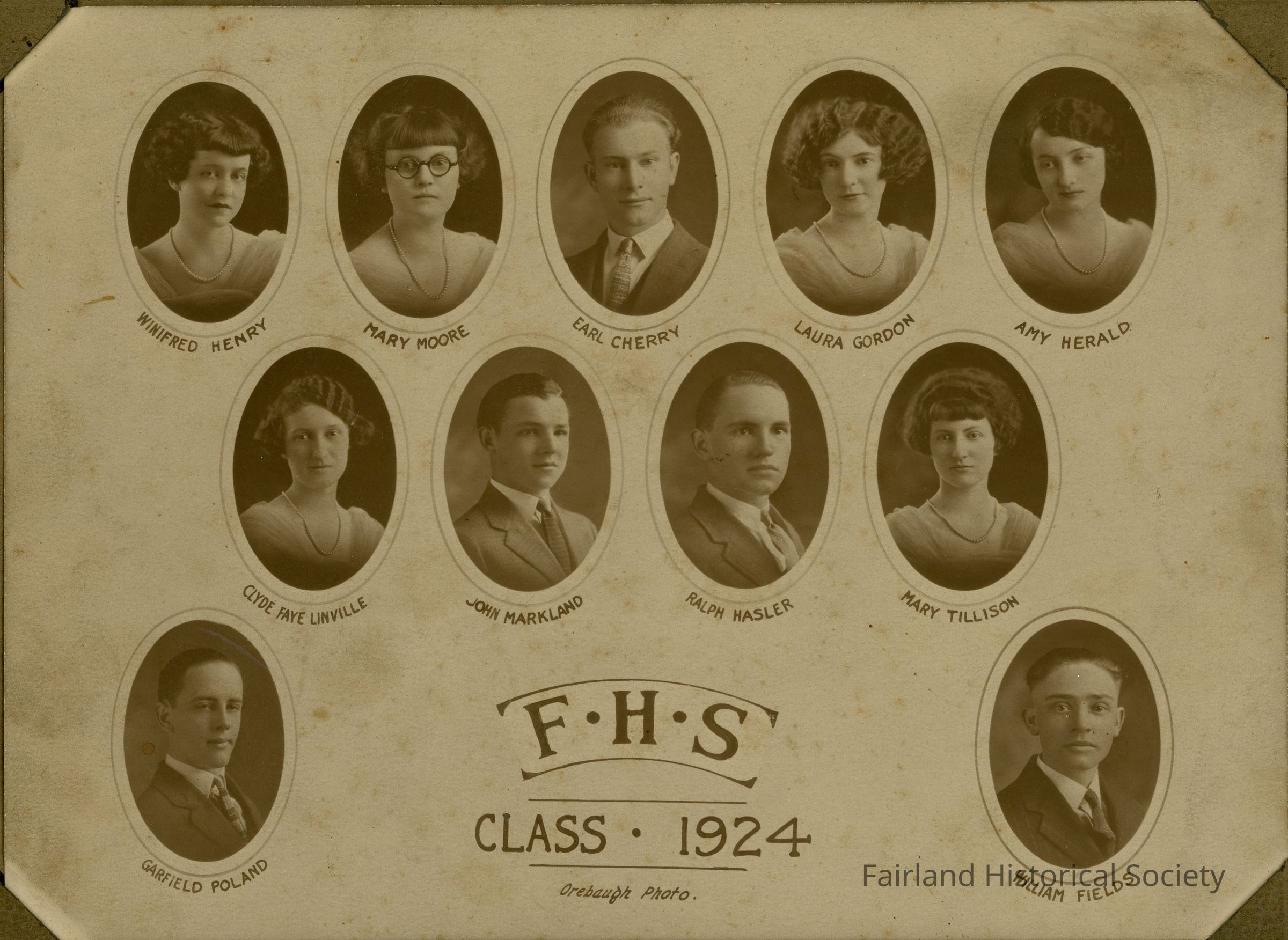 Winifred Henry, Mary Moore, Earl Cherry, Laura Gordon, Amy Herald, Clyde Faye Linville, John Markland, Ralph Hasler, Mary Tillison, Garfield Poland, William Fields; Orebaugh Photo