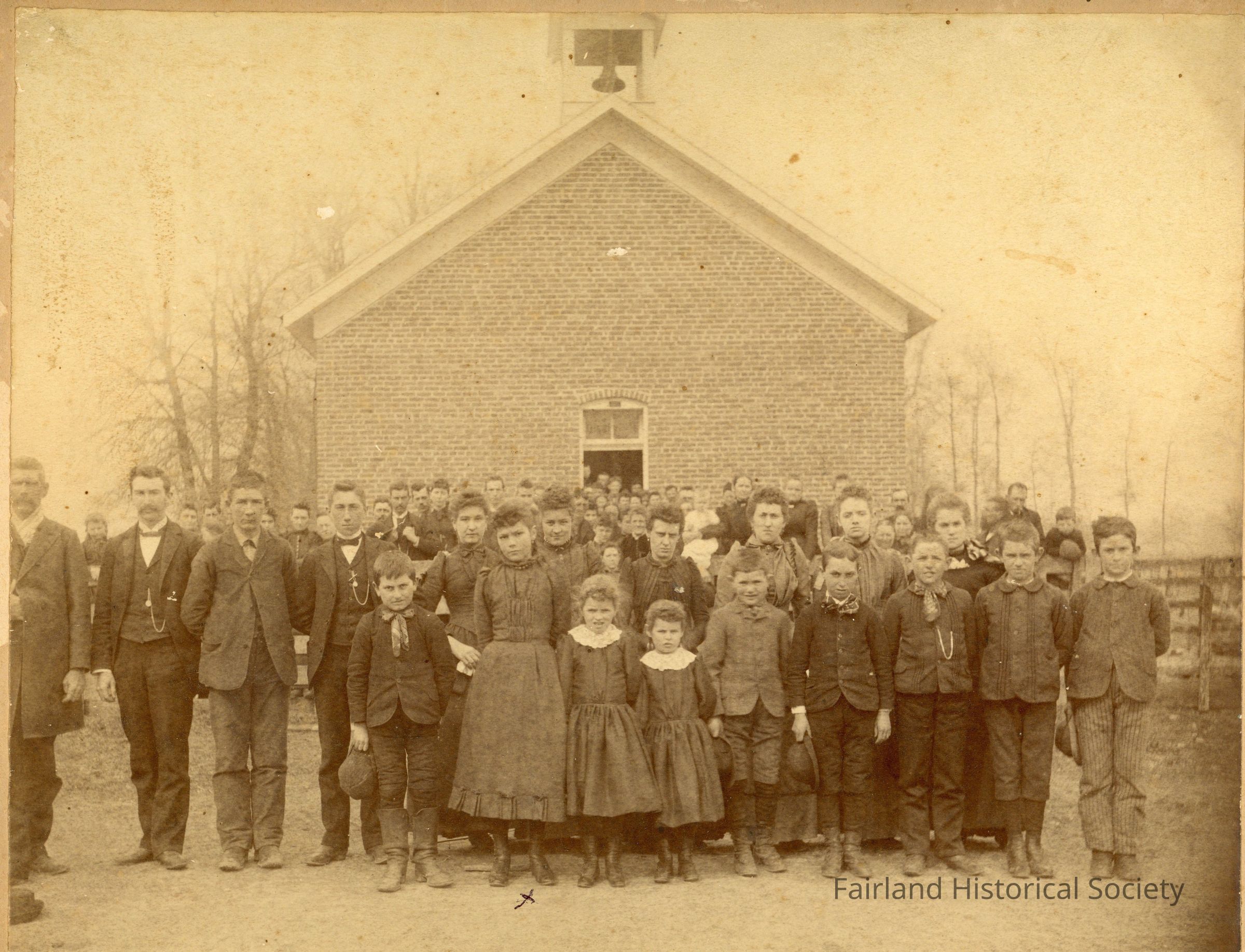 McDonald School, 1892, Dicie M. Smith in front marked with x, in Sugar Creek Township, Shelby County, Indiana, on Fairland RoadPhotograph Details
