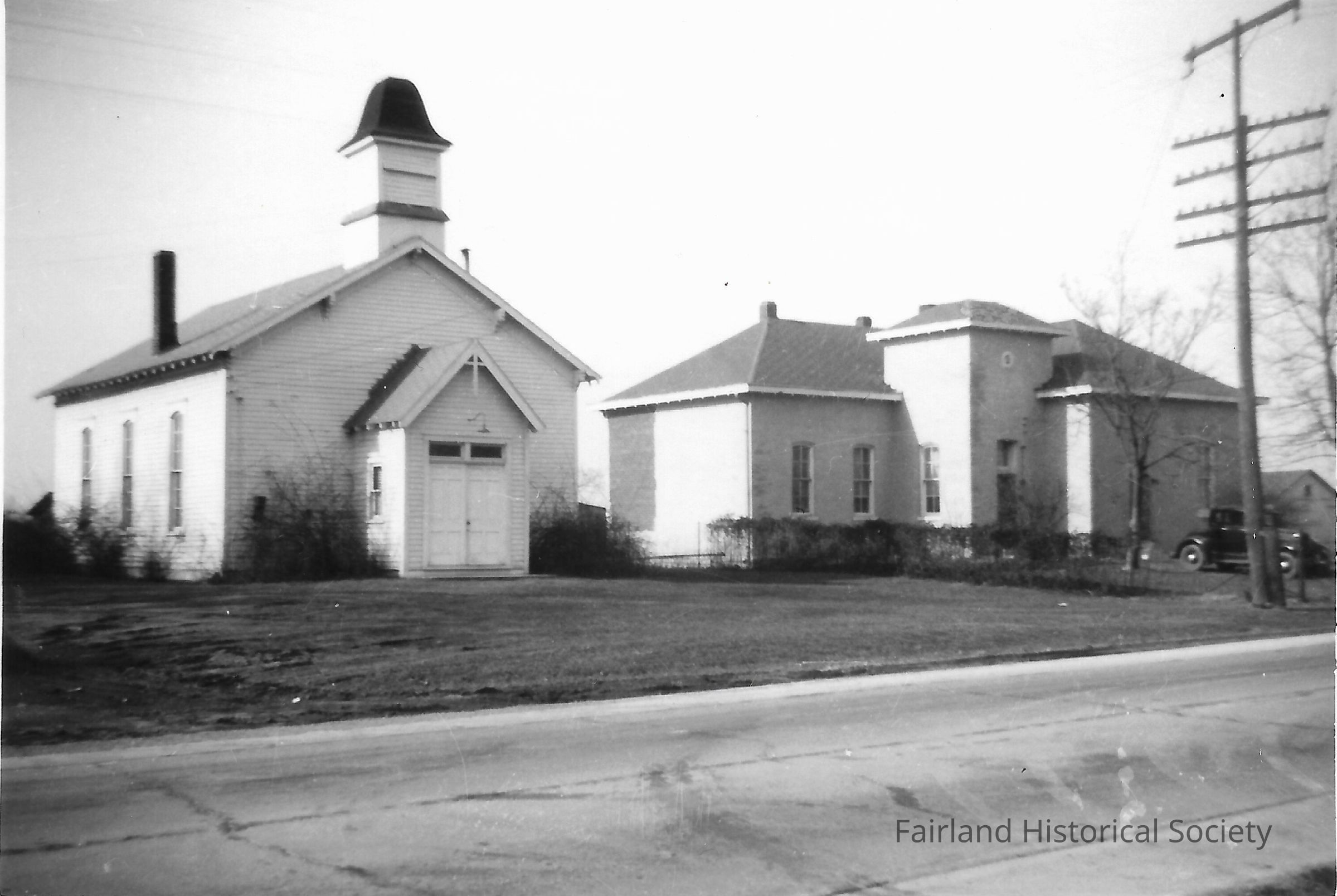 Pleasant View church (later used as a barn) and school on N Michigan Road. The church purchased the school & used it for a kitchen & Sunday School rooms. The school was later used as a residence.Photograph Details