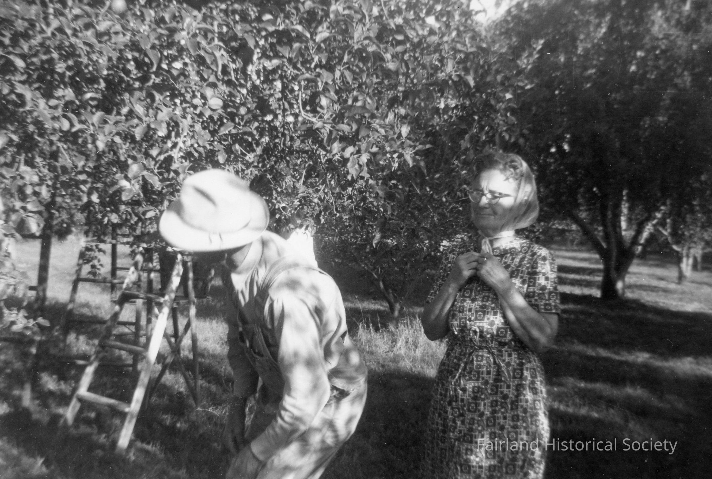 Frank Hauk & Nora Wilkins at Ruede's Apple Orchard (now Pleasant View Orchard) about 1966Photograph Details