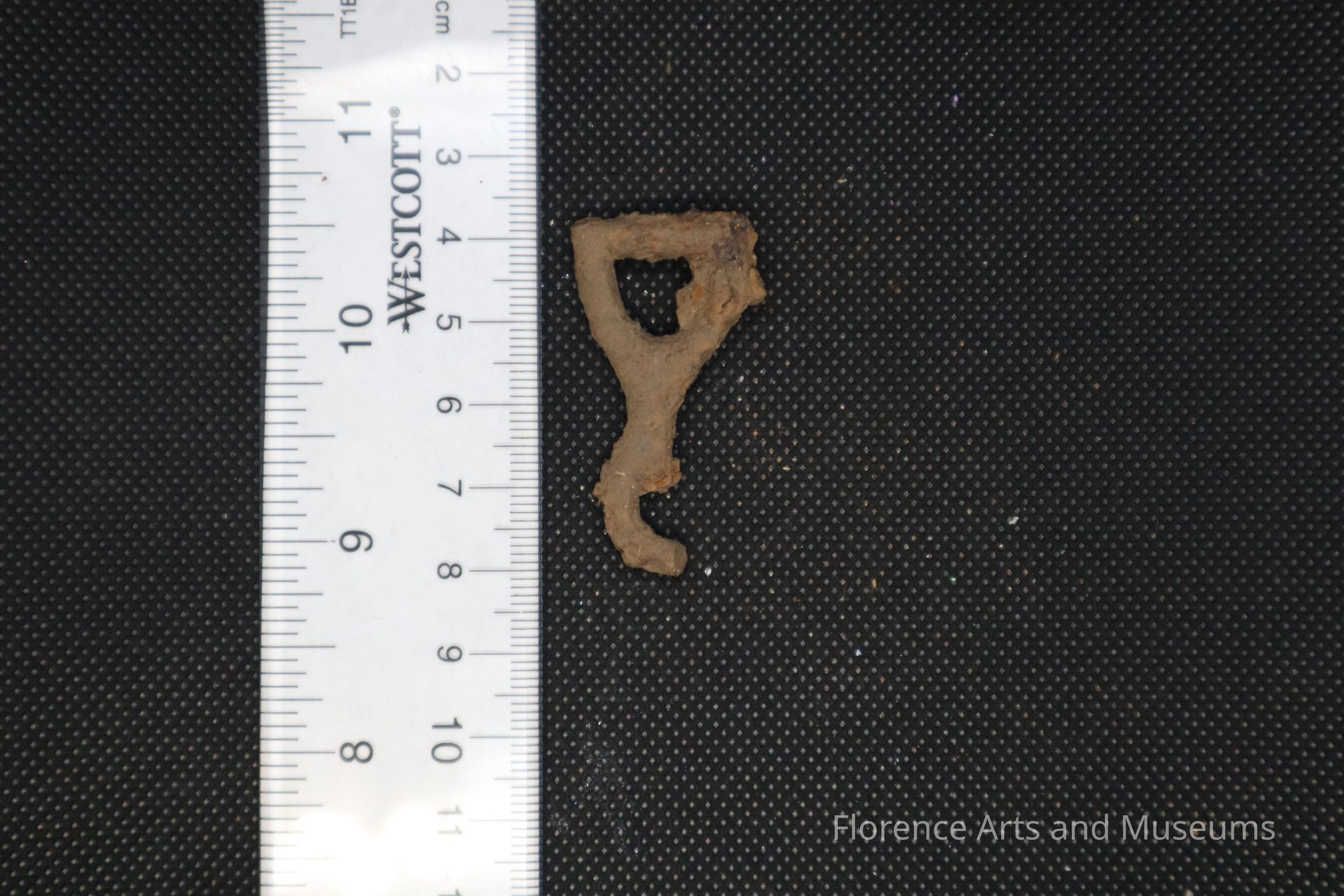 This metal fastener was a surface level find found in the garden of Pope's Tavern on October 19th, 2023.