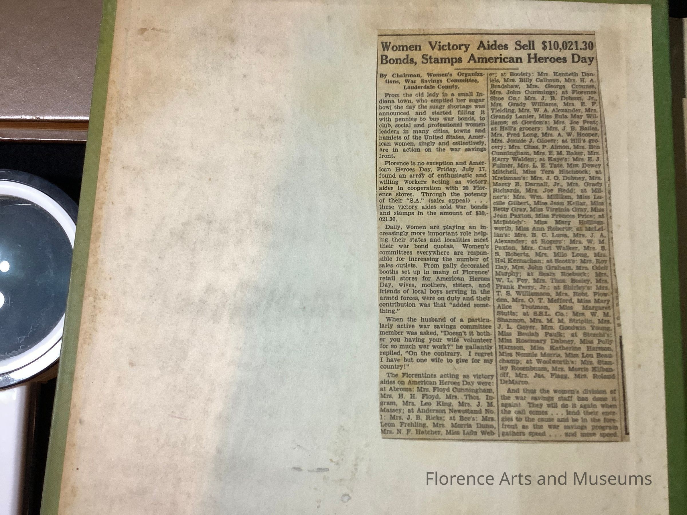 Many different newspaper articles from the 1940s, many of which are about War Bonds. There is a vast array of articles though as well, giving us a glimpse into the news of the 1940s and life in the 1940s.