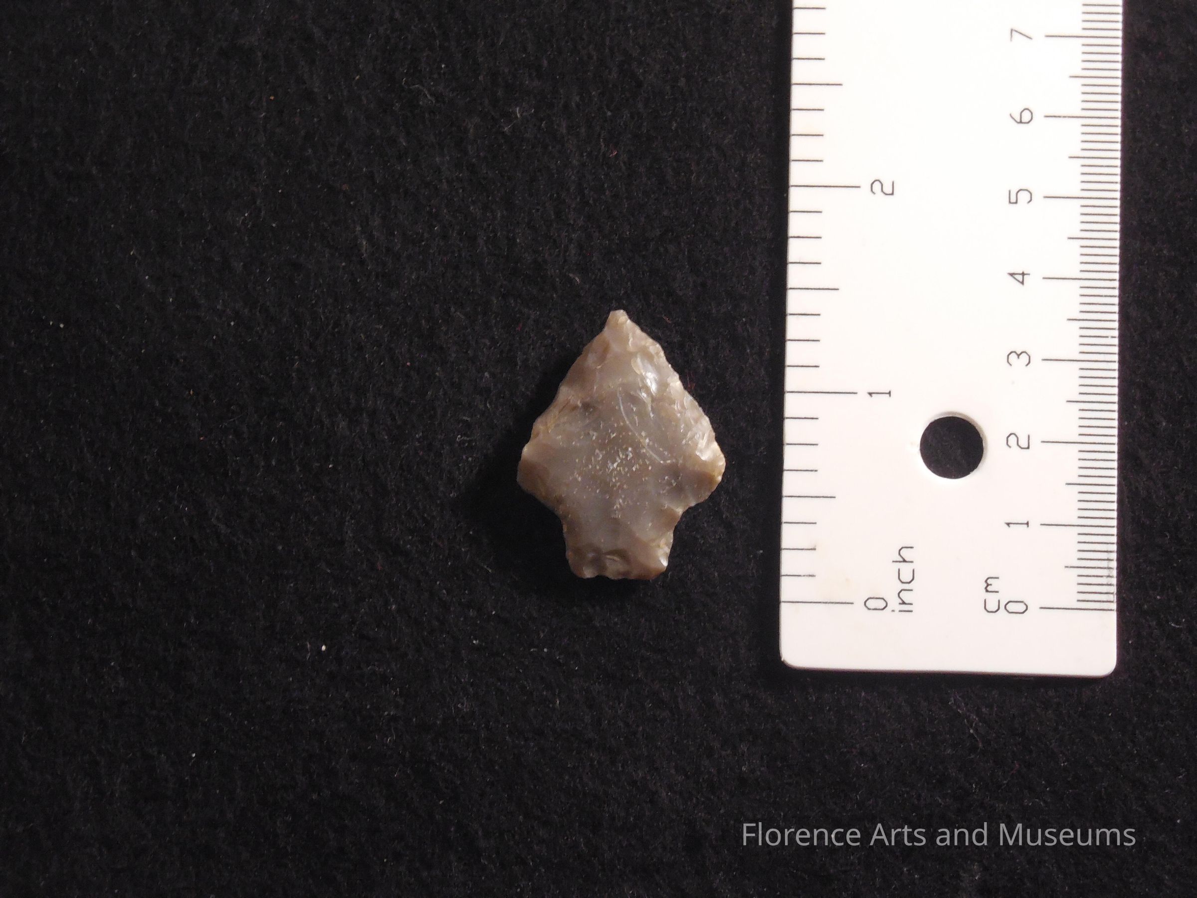The Elora is a medium to large triangular point with a blade that is often straight. The point is stemmed with shoulders that range from horizontal to angled slightly upward. The shoulders are often asymmetrical. The stem is straight to contracting; the base is straight to slightly concave and may be broken or unfinished. The point is named for the Elora area of Lincoln County, TN.Context