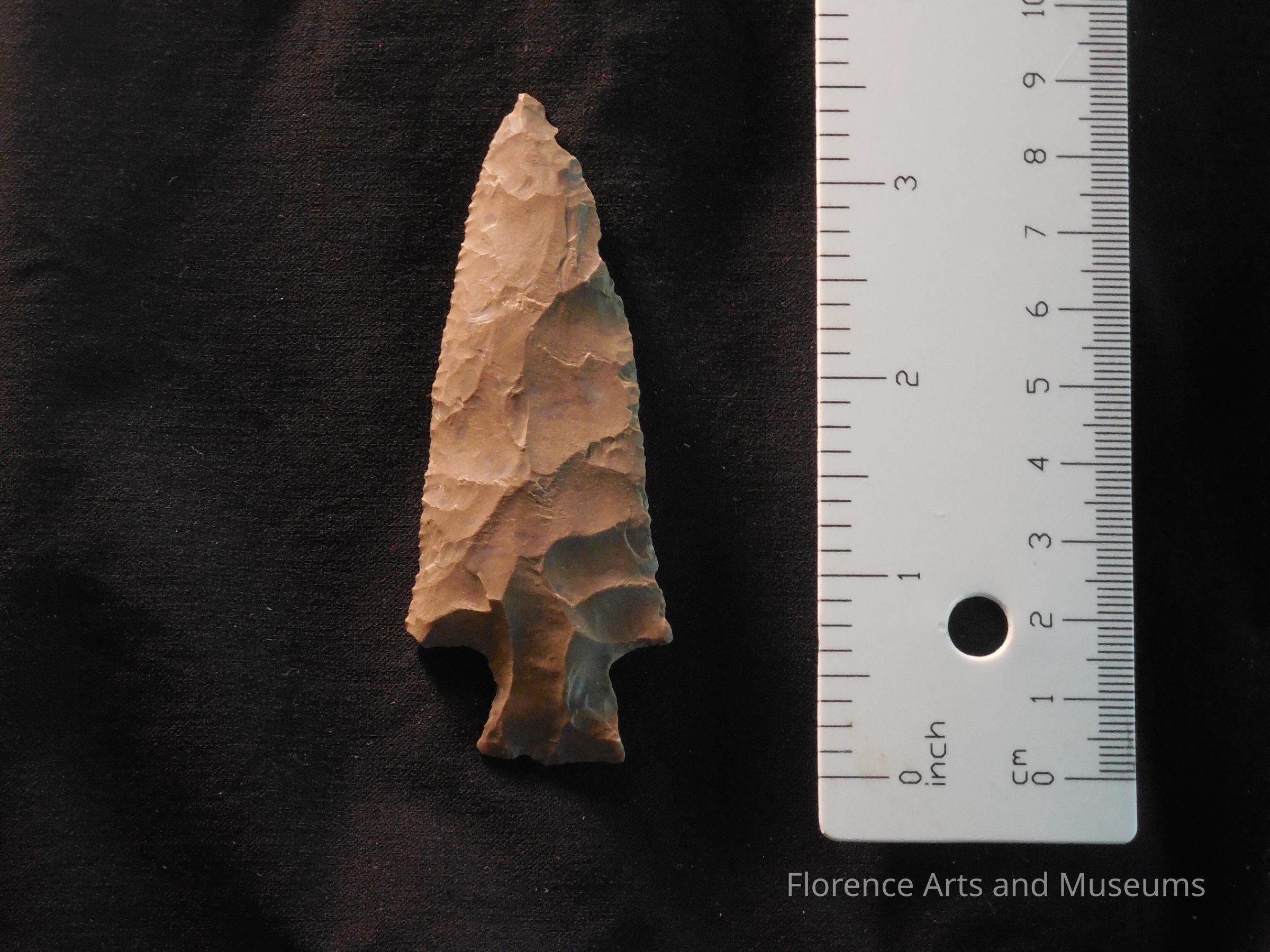 The Pickwick point is a medium to large sized projectile point with flared shoulders and a triangular shape. This example has a finely serrated blade. This point type was named for the Pickwick Basin of northwest Alabama where it was first identified by David DeJarnette in 1962.Context