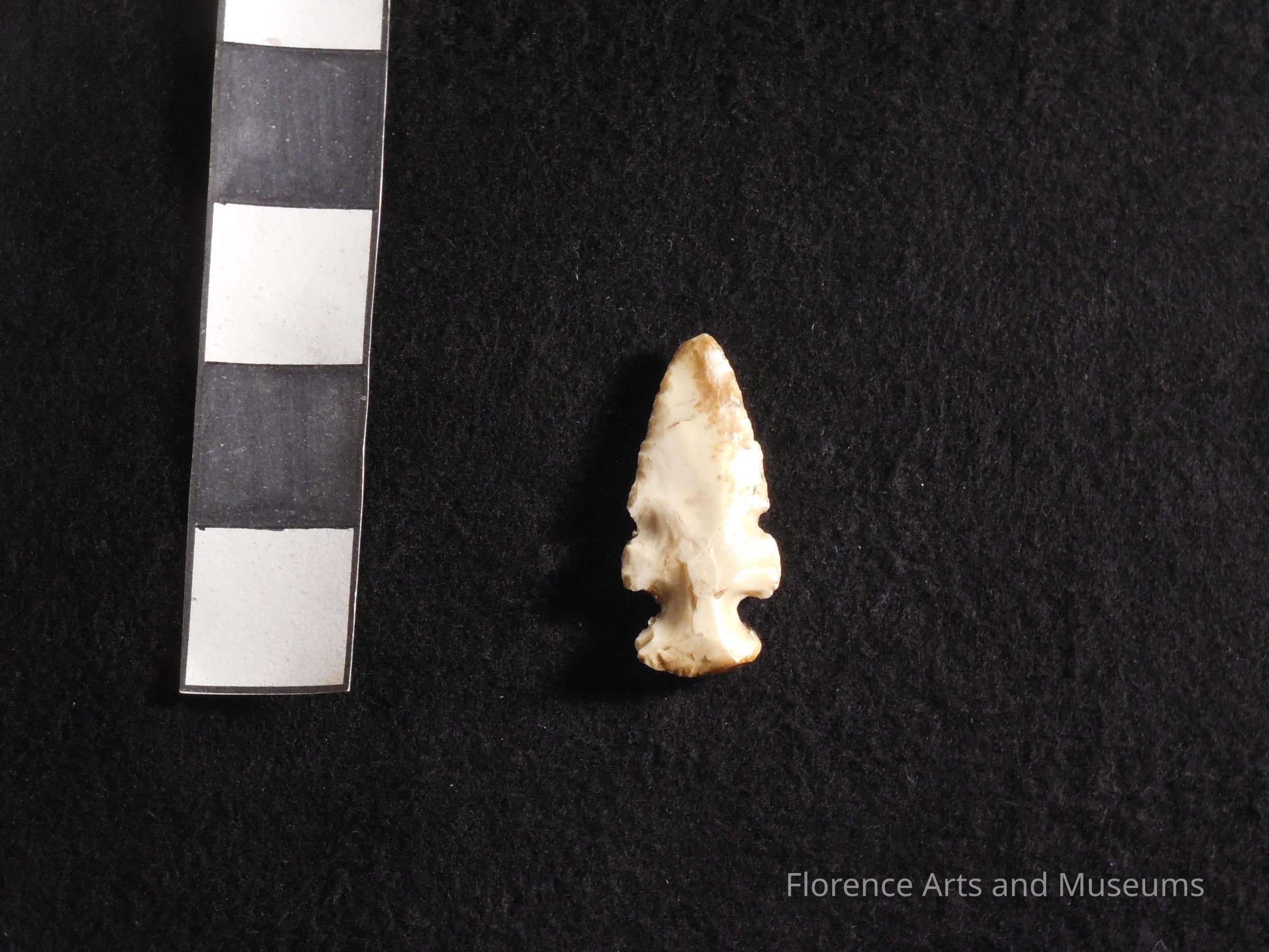The Evans point is medium-sized with an expanding stem and a notch removed from both sides of the blade.