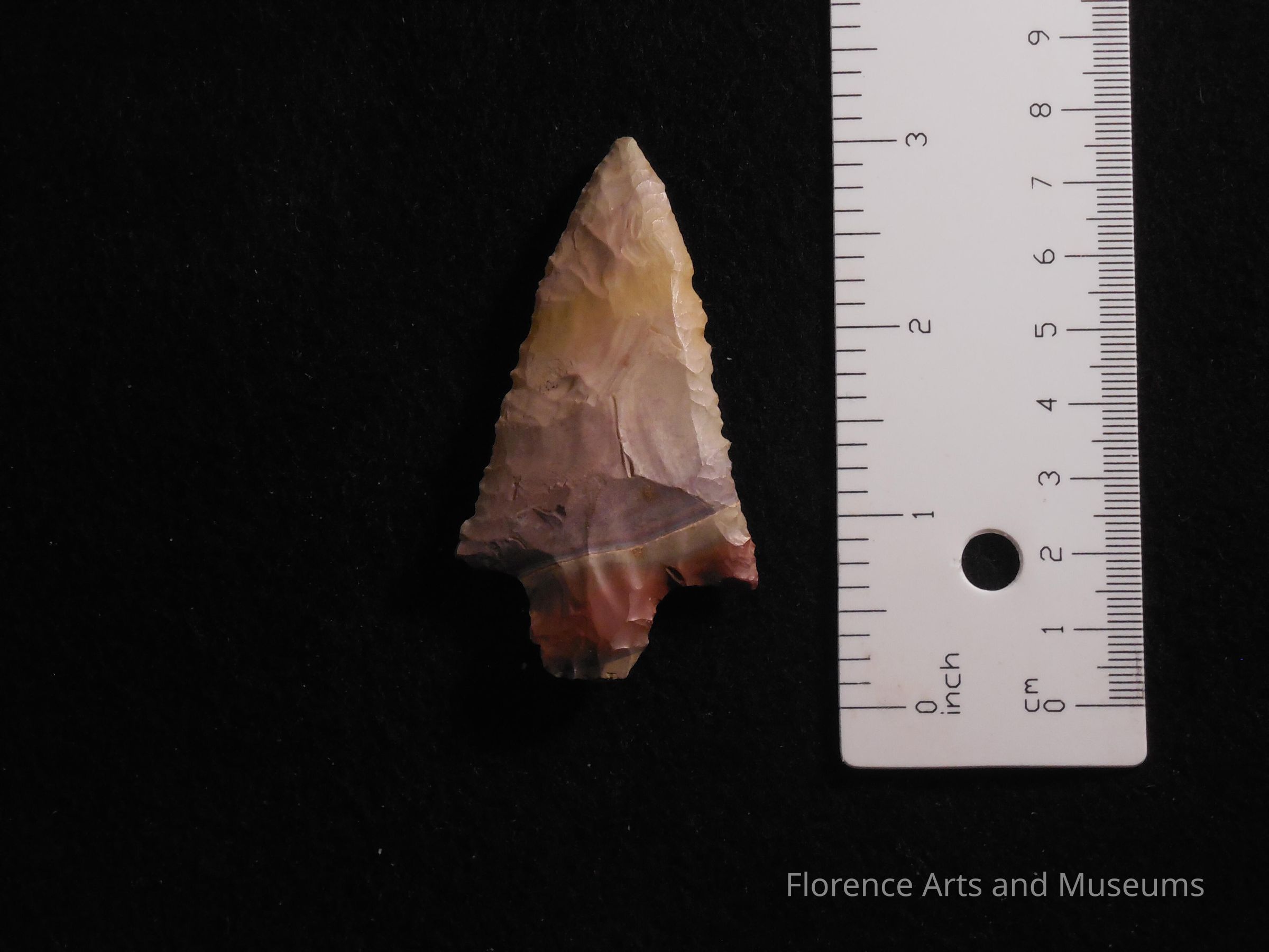 The Pickwick point is a medium to large sized projectile point with flared shoulders and a triangular shape. This example has a finely serrated blade. This point type was named for the Pickwick Basin of northwest Alabama where it was first identified by David DeJarnette in 1962.Context