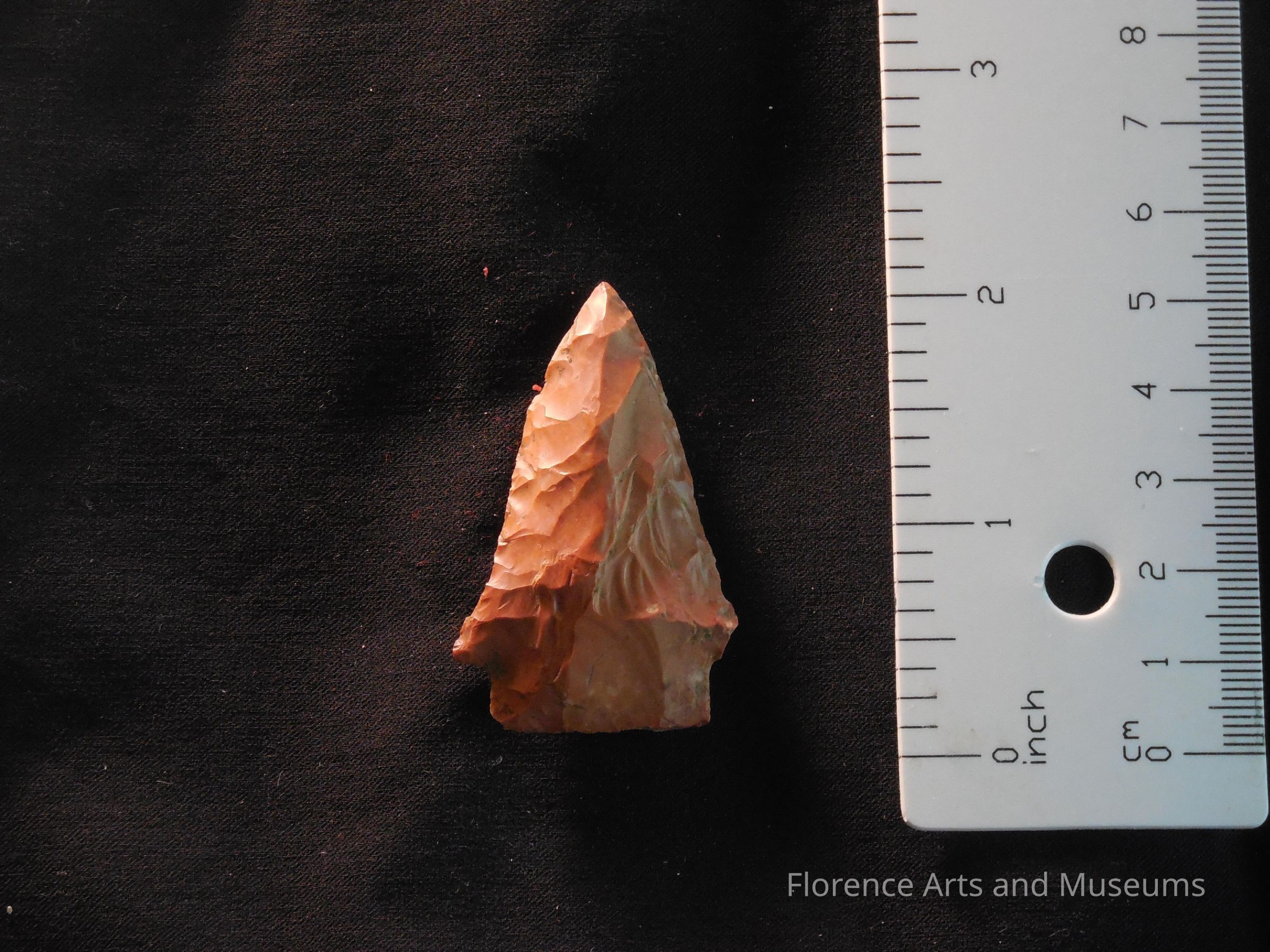 The Sykes point is a medium sized, triangular point form. The blade is commonly excurvate but may be straight. Shallow corner notches are the identifying features of this point. The stem is short and straight to slightly expanding; the base is wide and straight to slightly concave. It is named for the Sykes Place (now the Eva Site) in Benton County, TN.Context