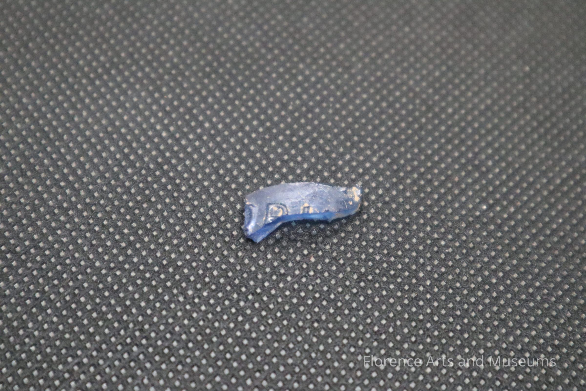 Small blue lettering raised container glass fragment.