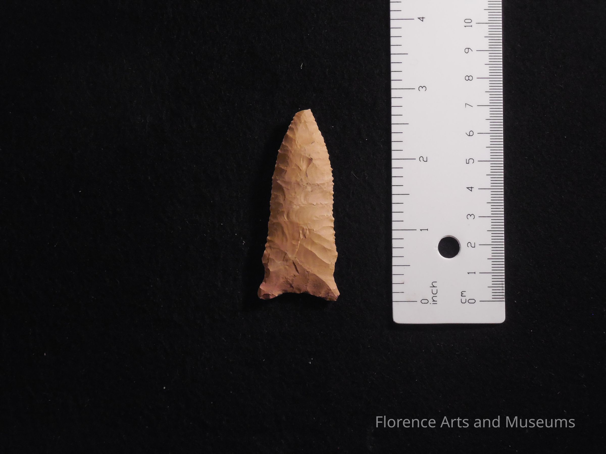 The Benton point is a medium to large size point with a straight to excurvate blade. It is typically made with fine, parallel flaking. This point type has a steeply beveled base. It is named for a site in Benton County, TN.Context