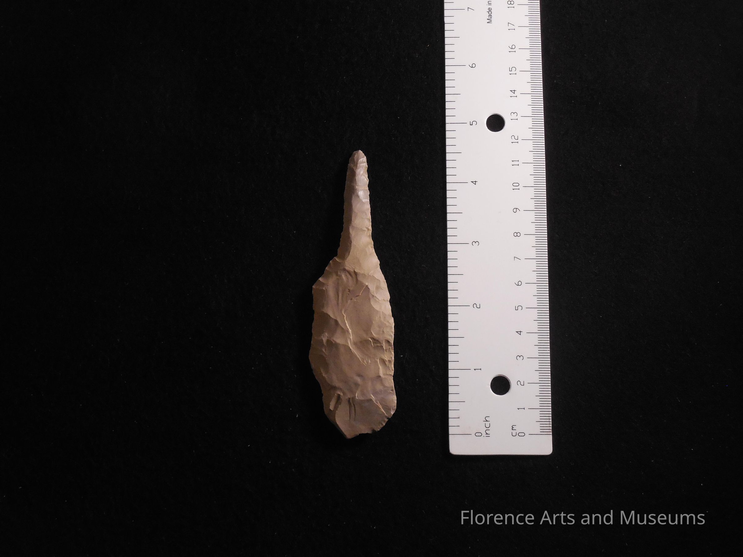 Lithic Tool with expanded hafting area, beveled sides, and sharpened tip.