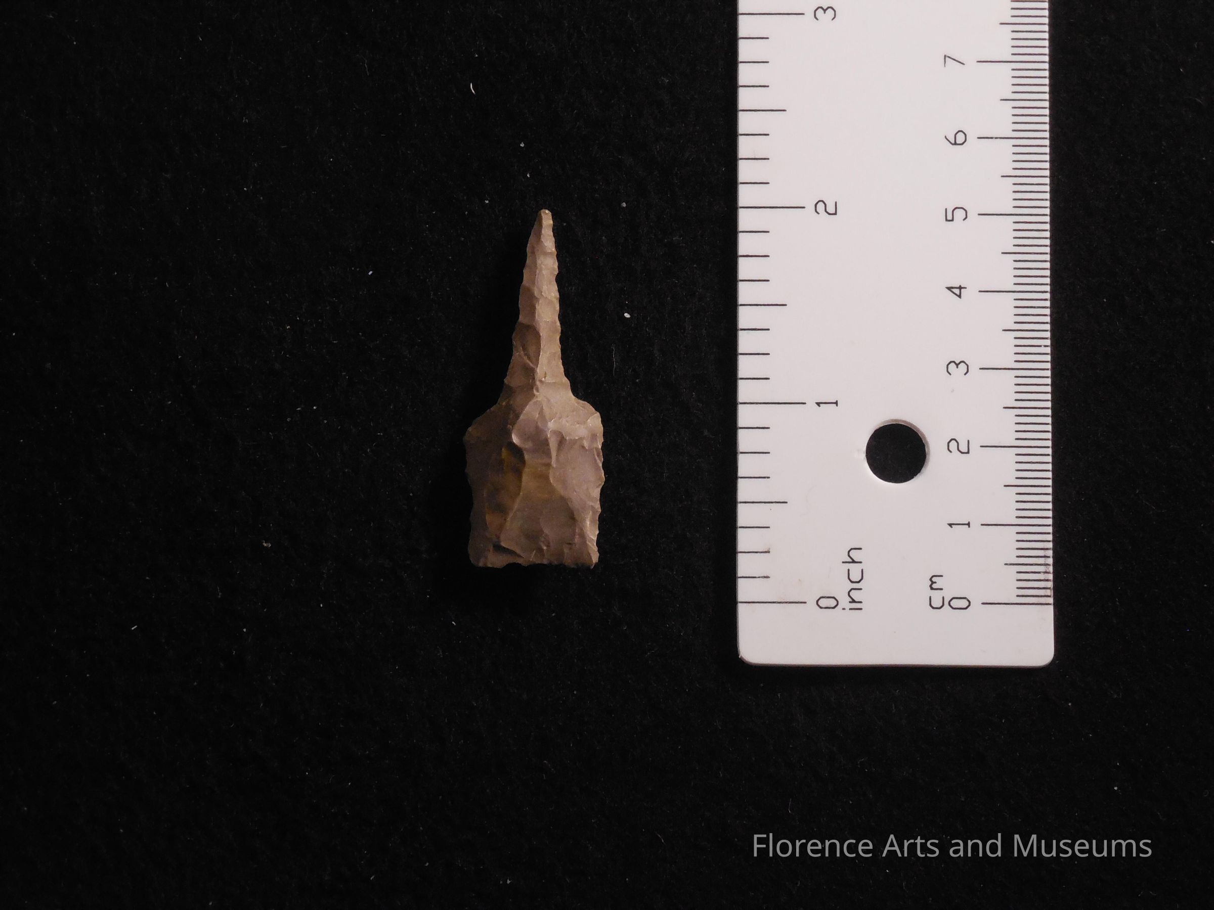 Lithic Tool with squared hafting area, beveled sides, and sharpened tip.