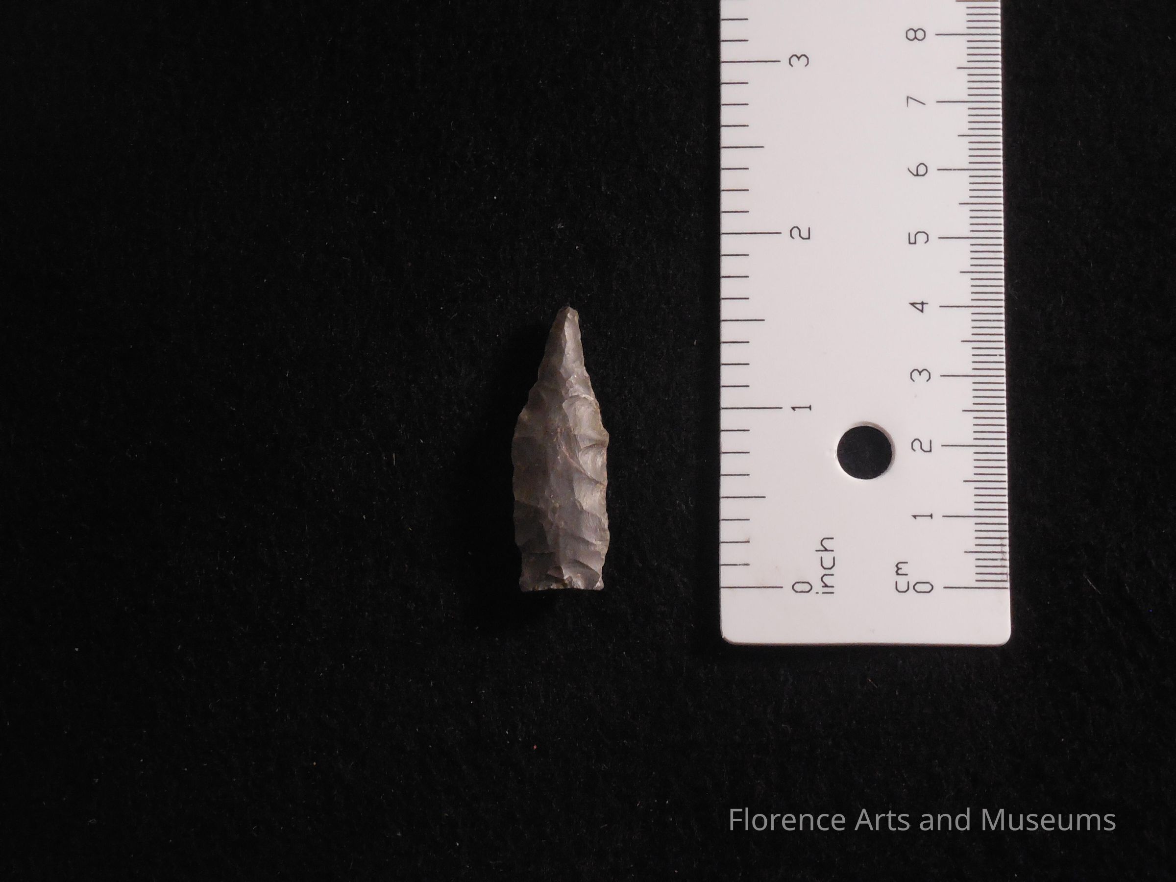 Lithic Tool with expanded hafting area, beveled sides, and sharpened tip.