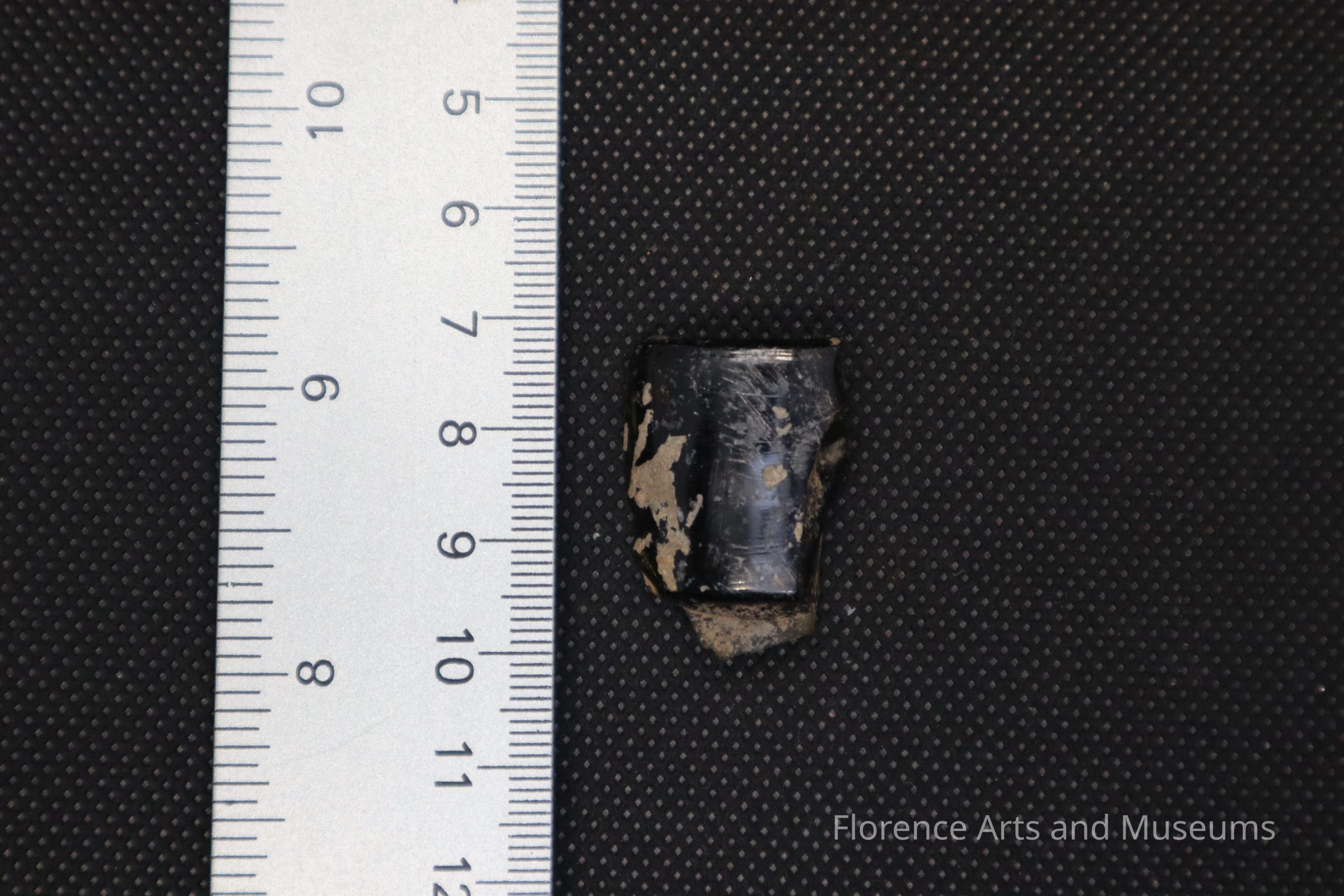 This fragment was excavated at the cistern on the dirt sifting level at Pope's Tavern.