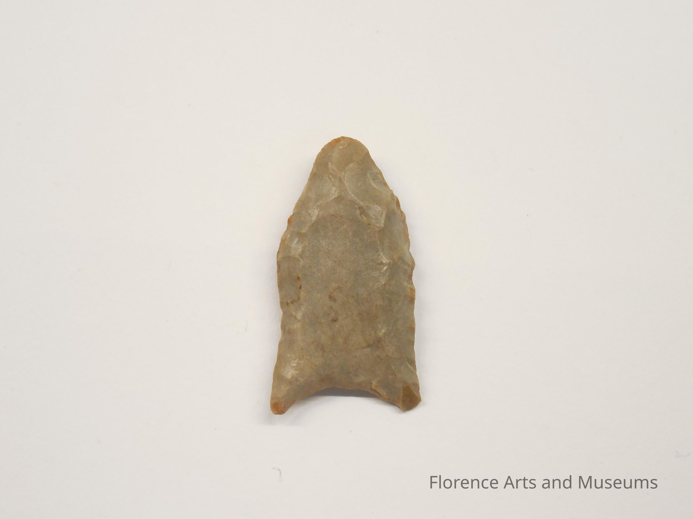 The Clovis point type is typically triangular and fluted with a concave base. The flute typically runs from the base on one or both sides and can cover up to 1/3 of the size of the point. The Clovis is made through percussion flaking with pressure flaking to finish the blade. The Clovis point was first identified near Clovis New Mexico in 1935 and long thought to be the first lithic technology in North America.Context
