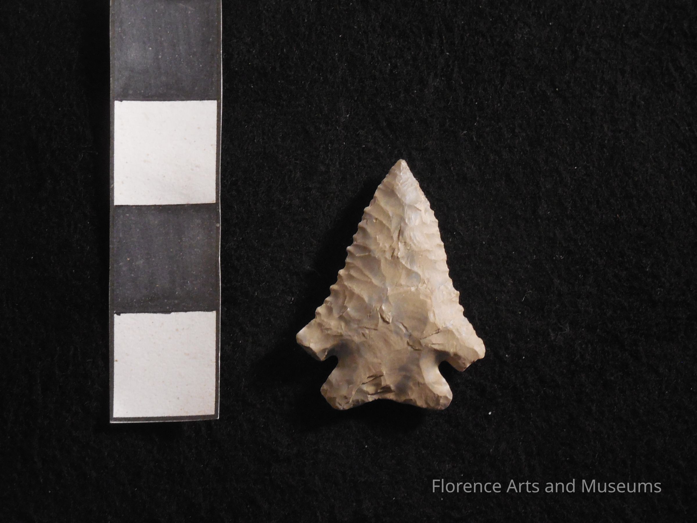 The Kirk Corner Notched point is a medium to large blade with distinctive corner notches. The base is straight to concave, although some examples are convex. The blade is serrated and the stem is expanding. This point type was named for the Kirk family who owned the property at the Hardaway site in Stanly County, NC.Context
