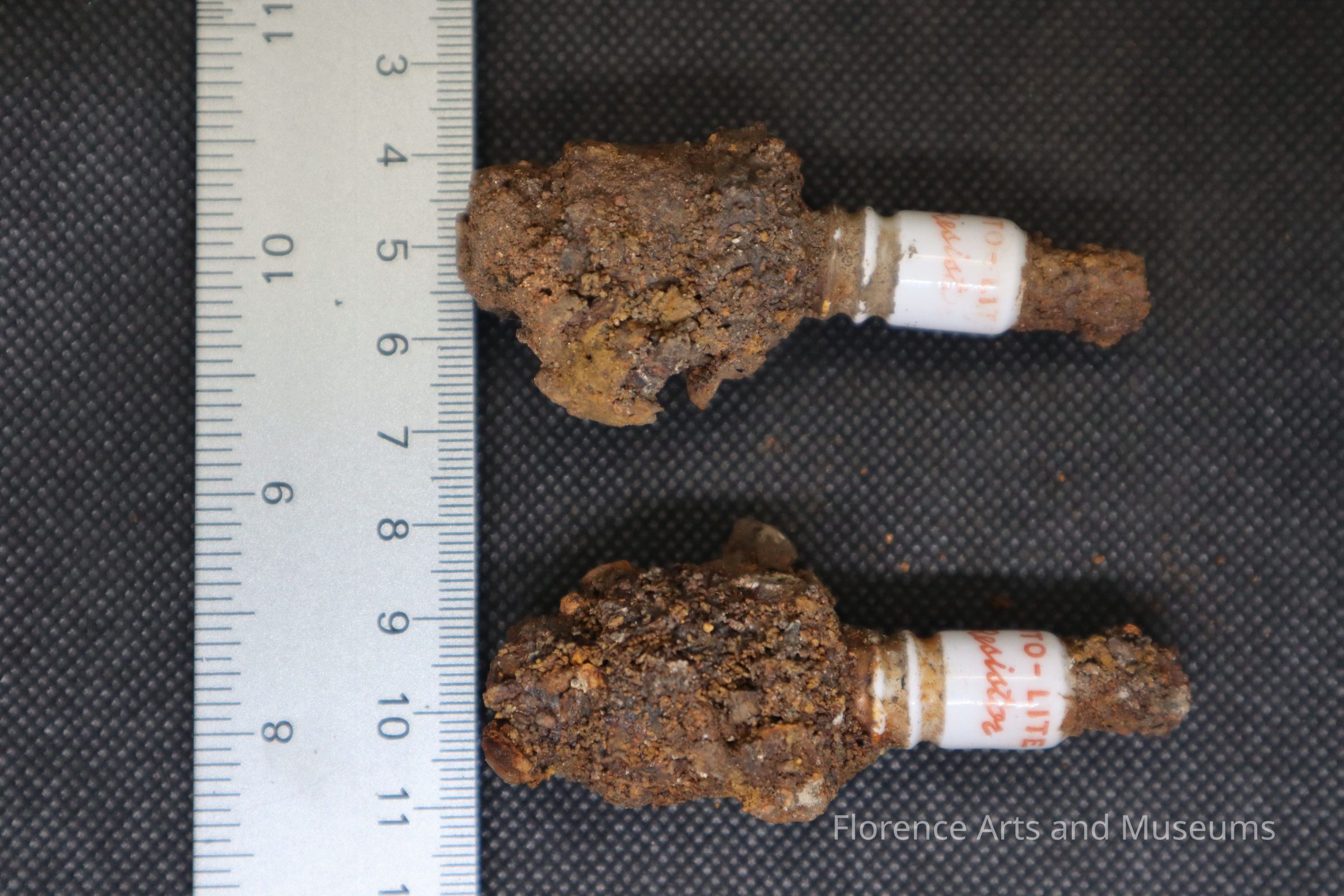 These two sparkplugs were excavated from the cistern on February 25th, 2024, at Pope's Tavern.