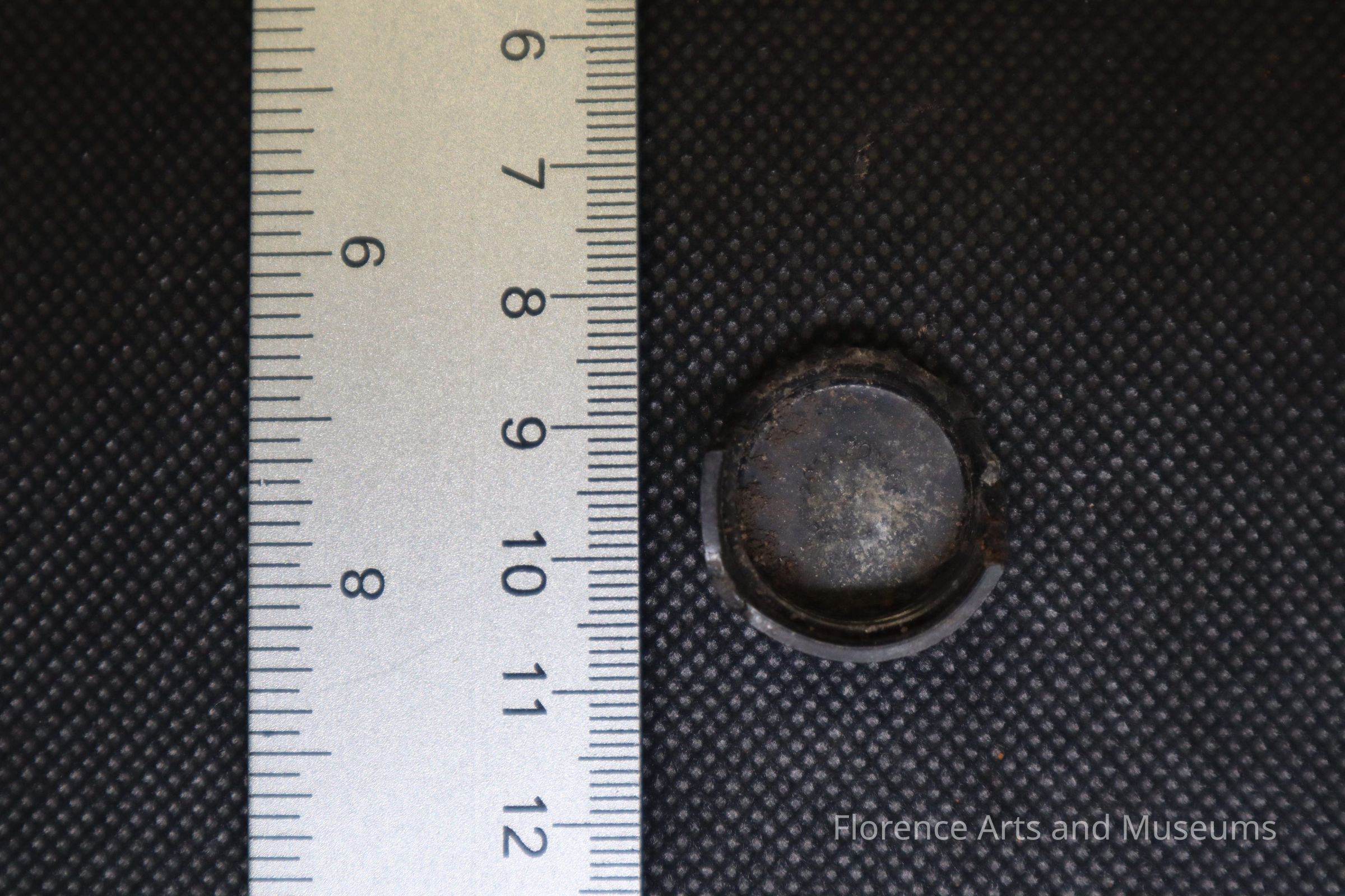 This plastic cap fragment was excavated at the cistern on December 16th, 2023, at Pope's Tavern.