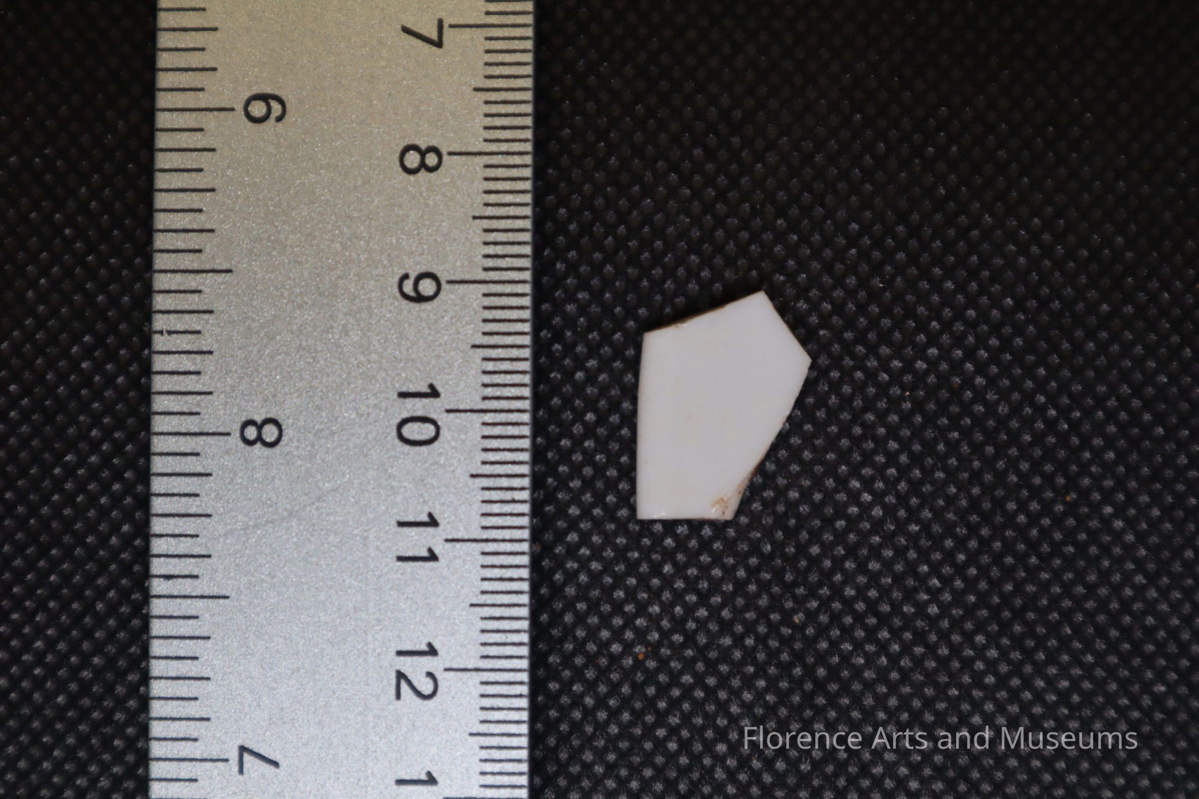 Edge-pieced whiteware fragment.