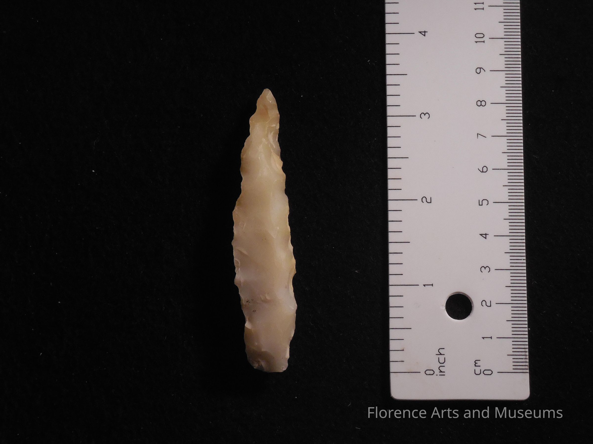 A small to medium, narrow lanceolate point, the Flint River Spike usually has one sharpened end. The point is local to the Tennessee River Valley and is named for the Flint River Mound at the mouth of the Flint River in Madison County, AL.Context