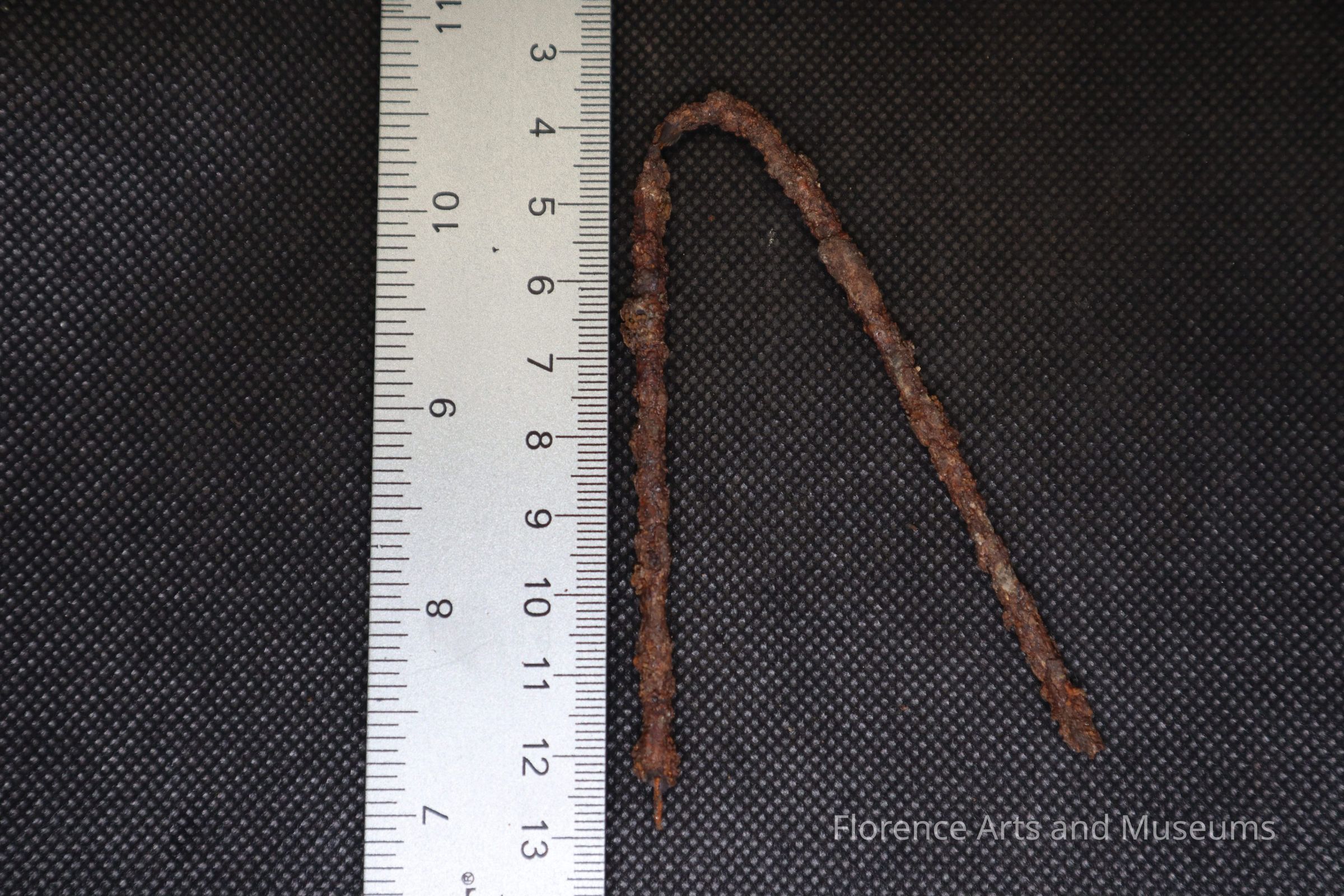 This metal bar was excavated from the cistern on February 25th, 2024, at Pope's Tavern.
