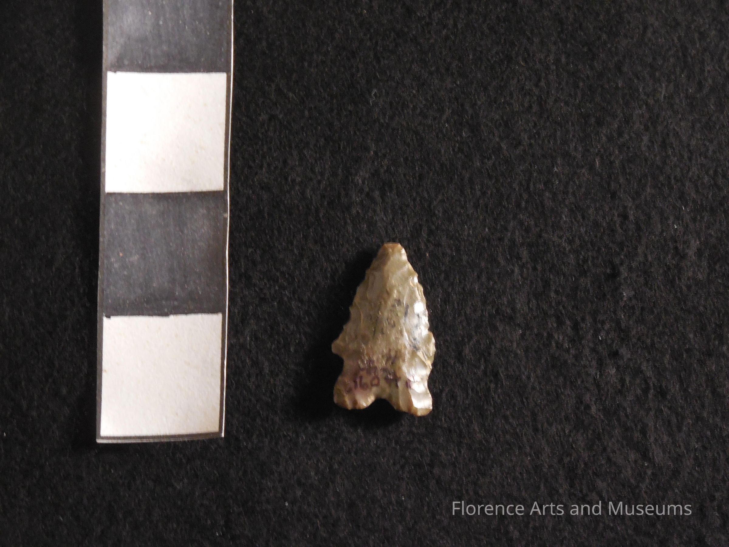 The LeCroy point type is a small, triangular dart point with a bifurcated base (forming two "ears") and a commonly serrated blade. The point is found in the northeast and midwest, extending down into the Tennessee River valley. It is named for the LeCroy site in Hamilton County, TN.Context