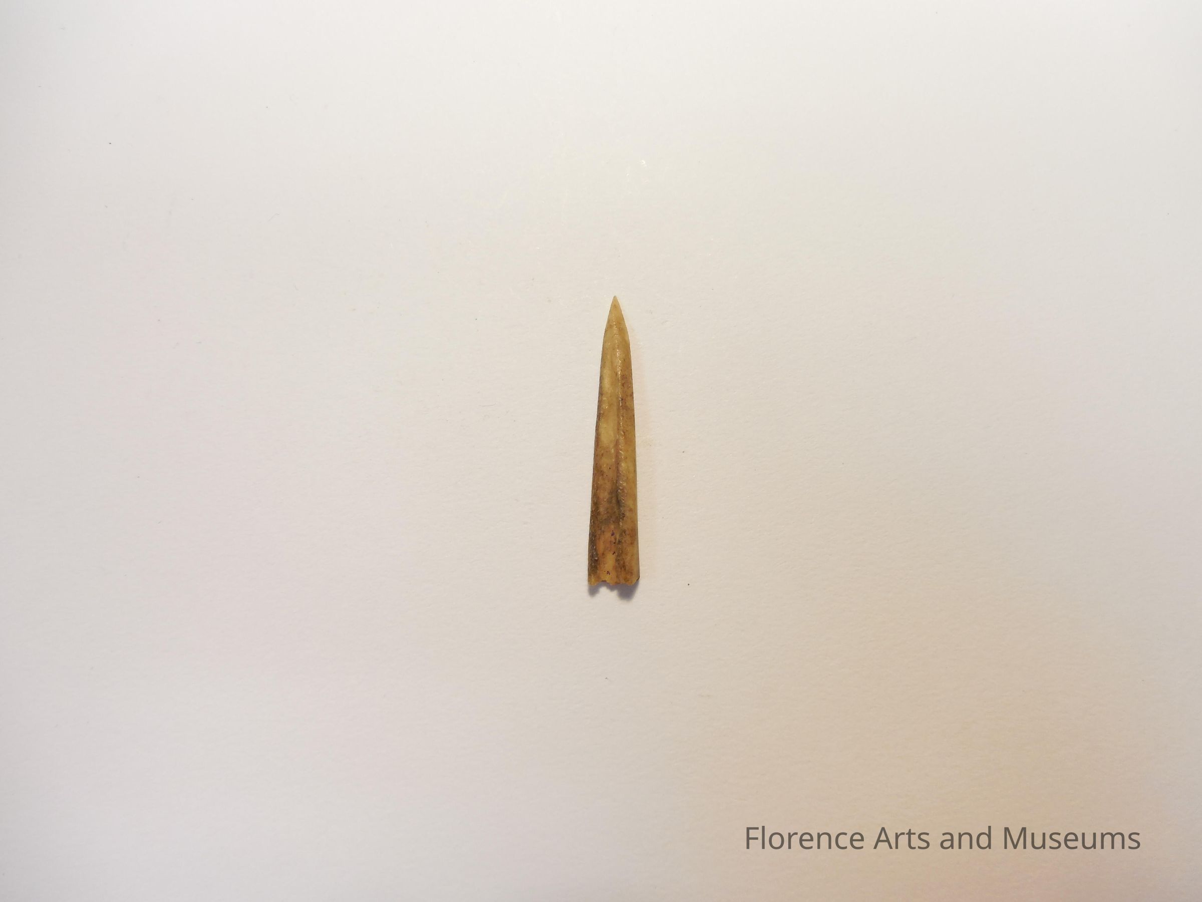 Made from the small bones of a deer, cylindrical awls were sharpened to a point at one end while the other end is typically a bone joint.