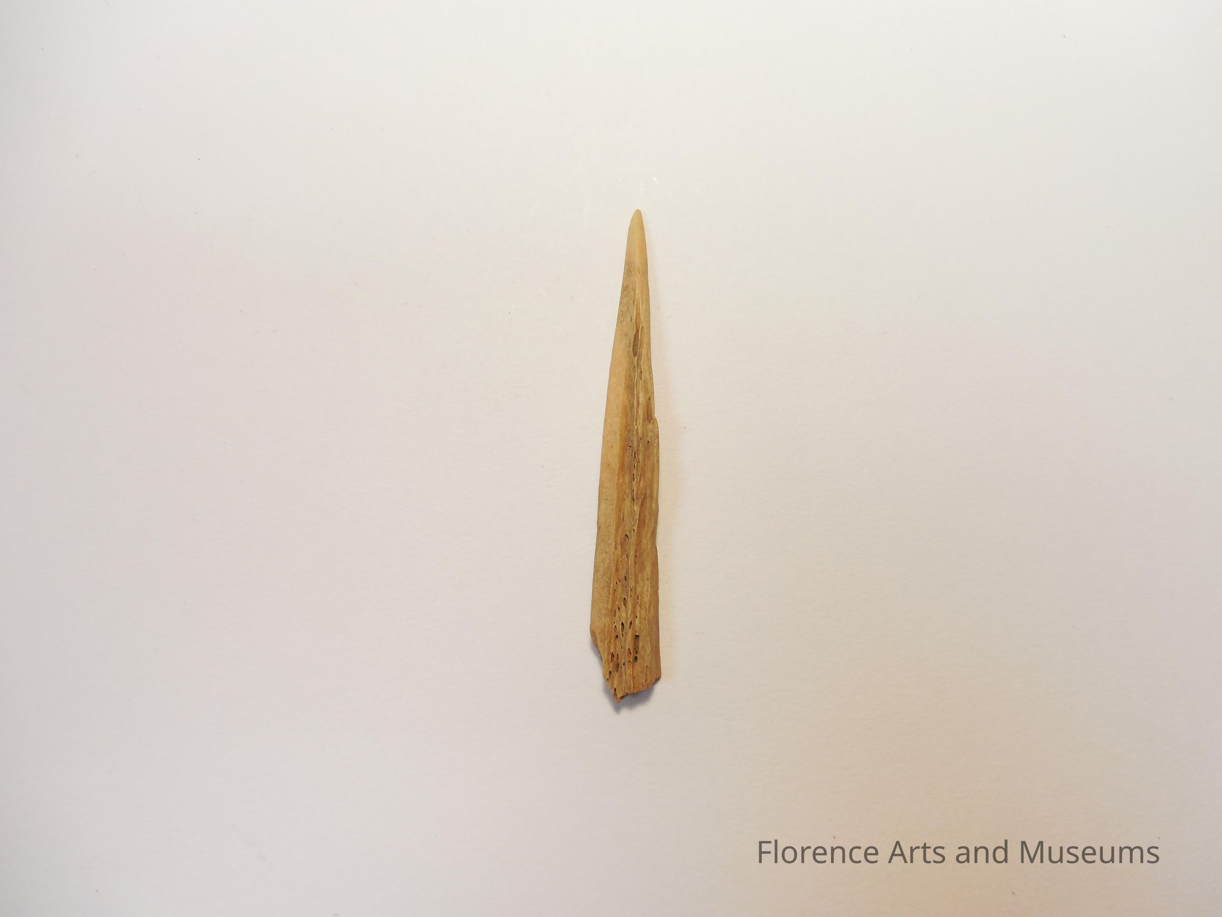 Awl made from a bone splinter that was sharpened at one end. These items only required the user to sharpen one end.