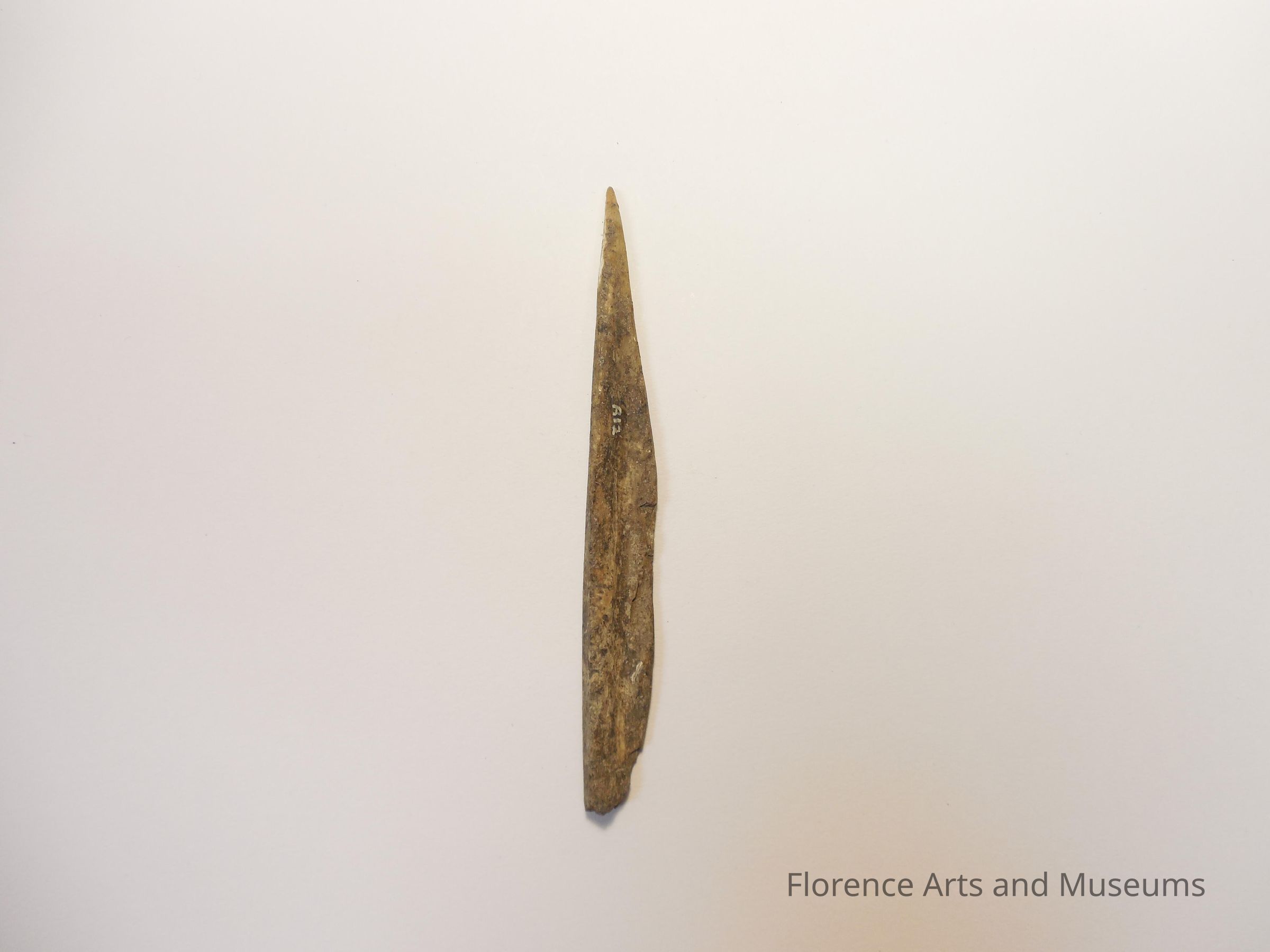 Awl made from a bone splinter that was sharpened at one end. These items only required the user to sharpen one end.