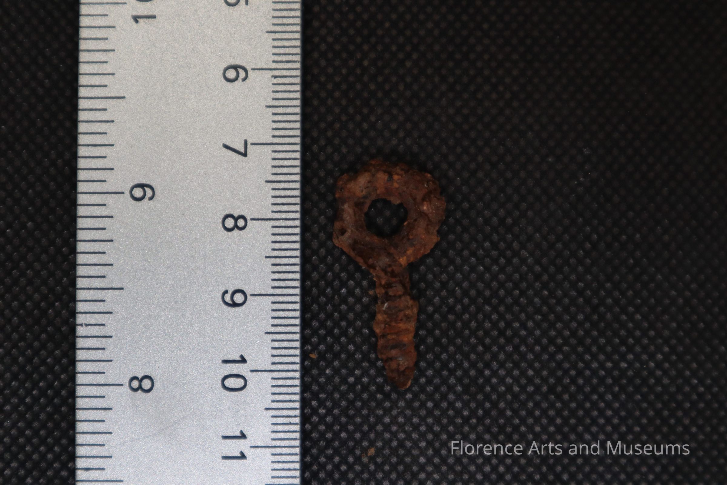 This metal eye-hook was excavated at Level 1 of Test Unit 4 on October 21st, 2023, at Pope's Tavern.