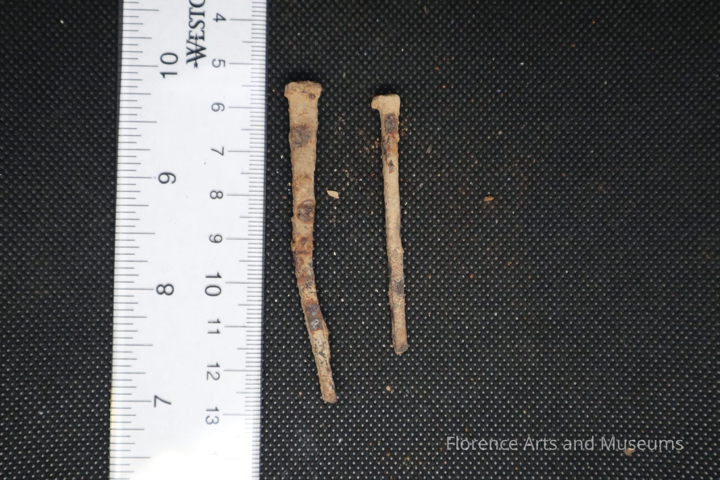 These cut nails were excavated from Level 3 of Test Unit 4 on August 23rd, 2024, at Pope's Tavern.